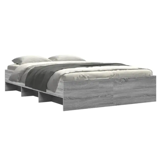 Zagotovite si boljši spanec s tem posteljnim okvirjem! Je prijeten dodatek za vsako spalnico. Vzdržljiv material: Posteljni okvir je izdelan iz inženirskega lesa. Inženirski les se ponaša z izjemno kakovostjo, gladko površino ter močjo, stabilnostjo in odpornostjo na vlago.Podnožje z letvami za optimalno podporo: Za podporo in zračnost ležišča je posteljni okvir opremljen z letvenim dnom.Funkcija shranjevanja: Ta posteljni okvir ima odprte predelke za dobro organizacijo revij, knjig, igrač in drugih manjših predmetov. Dobro je vedeti:Vzmetnica ni priložena tej postelji. Ponujamo različno izbiro ležišč. V naši trgovini si lahko ogledate ustrezne vzmetnice.Barva: Siva sonomaMaterial posteljnega okvirja: Inženirski lesMaterial letvic: Vezan lesCelotne dimenzije: 193 x 123 x 35 cm (D x Š x V)Dimenzije predelka (vsak): 63,5/60 x 18,5 x 15 cm (D x Š x V)Velikost primerne vzmetnice: 120 x 190 cm (Š x D) (vzmetnica ni priložena)Potrebno sestavljanje: Da