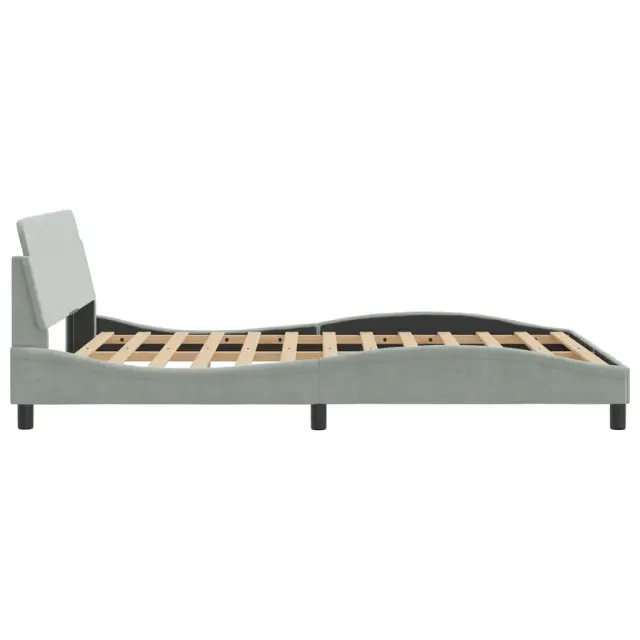 Zagotovite si boljši spanec s tem posteljnim okvirjem z vzglavjem! Je prijeten dodatek za vsako spalnico. Mehak žamet: Žamet je mehka in udobna tkanina, ki je prijetna do kože.Podporne noge: Postelja je podprta s čvrstimi nogami, ki zagotavljajo njeno stabilnost, varnost in trdnost.Letvice iz vezanega lesa: Letvice iz vezanega lesa omogočajo dobro porazdelitev teže in zagotavljajo, da vzmetnica ostane na mestu ob vsakem zasuku in obračanju med spanjem.Udobna opora: To vzglavje za posteljo vam zagotavlja odlično oporo za hrbet, ko sedite na postelji in berete ali gledate filme.Valovita stranica: Valoviti videz posteljnega okvirja je eleganten in prefinjen. Dekorju v vašem domu dodaja sodoben in eleganten pridih ter tako postane osrednja točka spalnice. Dobro je vedeti:Vzmetnica ni priložena tej postelji. Ponujamo različno izbiro ležišč. V naši trgovini si lahko ogledate ustrezne vzmetnice.Barva: Svetlo sivaMaterial: Žamet (100 % poliester), kovina, trdna borovina, vezan lesCelotne dimenzije: 218 x 125 x 74,5 cm (D x Š x V)Velikost primerne vzmetnice: 120 x 200 cm (Š x D) (vzmetnica ni priložena)Potrebno sestavljanje: Da