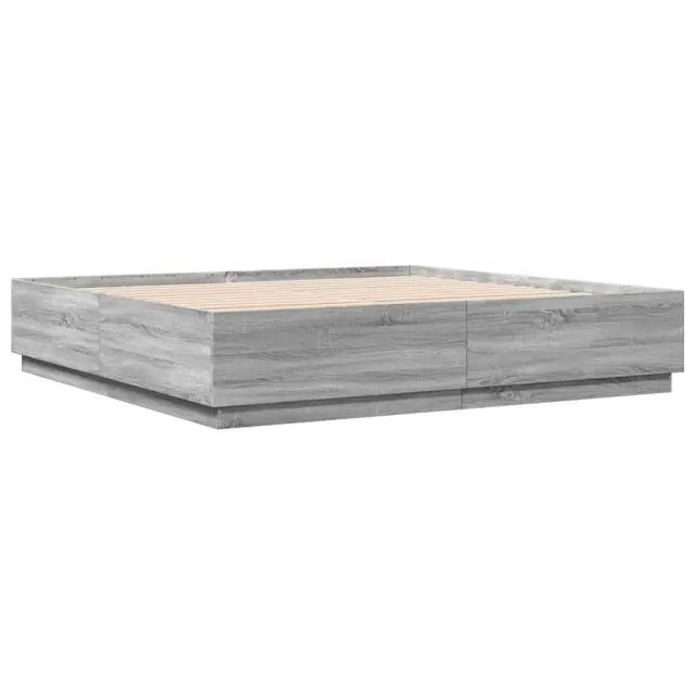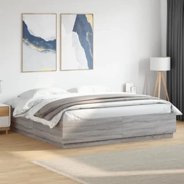 Zagotovite si boljši spanec s tem posteljnim okvirjem! Je prijeten dodatek za vsako spalnico. Vzdržljiv material: Inženirski les se ponaša z izjemno kakovostjo, gladko površino ter močjo, stabilnostjo in odpornostjo na vlago.Trdne letvice: Letvice iz vezanega lesa omogočajo dobro porazdelitev teže in zagotavljajo, da vzmetnica ostane na mestu ob vsakem zasuku in obračanju med spanjem.Moderna zasnova: Svojim notranjim prostorom dodajte moderen stil! Moderen stil notranjih prostorov vključuje čiste linije, minimalističen videz in naravno svetlobo. Dobro je vedeti:Vzmetnica ni priložena tej postelji. Ponujamo različno izbiro ležišč. V naši trgovini si lahko ogledate ustrezne vzmetnice.Barva: Siva sonoma Material posteljnega okvirja: Inženirski lesMaterial letvic: Vezan lesCelotne dimenzije: 203 x 183 x 40 cm (D x Š x V)Velikost primerne vzmetnice: 180 x 200 cm (Š x D) (vzmetnica ni priložena)Potrebno sestavljanje: Da