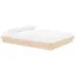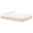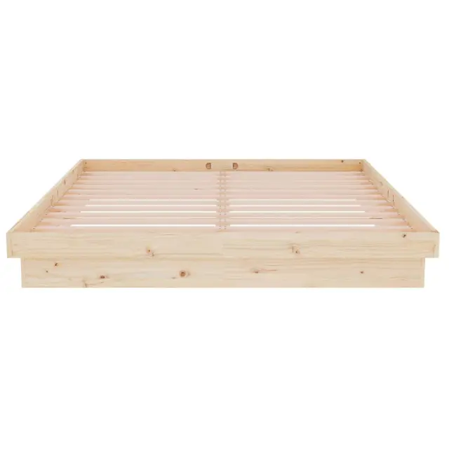 Ta leseni posteljni okvir je popoln za miren spanec. Na praktičen način polepša notranjost vašega doma. Vrhunski material: trdna borovina je čudovit naravni material. Borovina ima ravne vzorce, grče pa dajejo materialu njegov značilen, rustikalen videz.Rustikalni čar: Postelja daje vašemu prostoru rustikalne podtone, ki so lahko resnično sproščujoči. Pomirjujoč učinek tega lesenega posteljnega okvirja spremeni katero koli spalnico ali sobo za goste v pomirjujoč prostor, hkrati pa v prostor doda naravni element.Trdne letvice: Letvice iz vezanega lesa omogočajo dobro porazdelitev teže in zagotavljajo, da vzmetnica ostane na mestu ob vsakem zasuku in obračanju med spanjem. Opomba:Paket vsebuje samo posteljni okvir. Vzmetnica ni priložena. V naši trgovini si lahko ogledate ustrezne vzmetnice.Ta posteljni okvir je primeren za vzmetnico velikosti 150x200 cm (5FT King Size).Material: Trdna borovina (neobdelana)Dimenzije: 204 x 153,5 x 21 cm (D x Š x V)Velikost primerne vzmetnice: 150 x 200 cm (Š x D) (5FT King Size) (vzmetnica ni priložena)Potrebno sestavljanje: Da
