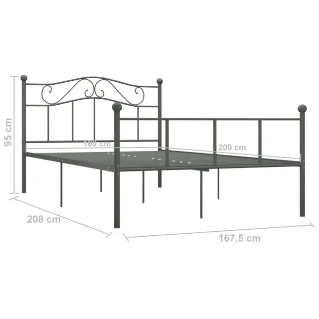 Z našim kovinskim posteljnim okvirjem lahko v svoji spalnici ustvarite elegantno in klasično vzdušje! Posteljni okvir je izdelan s trdno kovinsko konstrukcijo. Trdne letve nudijo zadostno podporo in so zelo udobne. Vse te lastnosti vam bodo zagotovo nudile odličen nočni spanec! Posteljni okvir je primeren za vzmetnico velikosti 160 x 200 cm. Upoštevajte, da paket vsebuje samo posteljni okvir s podom iz letvic; vzmetnica ni priložena. Postelja je preprosta za sestavo. V naši trgovini si lahko ogledate primerno vzmetnico.Barva: SivaMaterial: KovinaCelotne dimenzije: 208 x 167,5 x 95 cm (D x Š x V)Spalna višina, merjena od tal: 28 cmVelikost primerne vzmetnice: 160 x 200 cm (Š x D) (vzmetnica ni priložena)Potrebno sestavljanje: Da