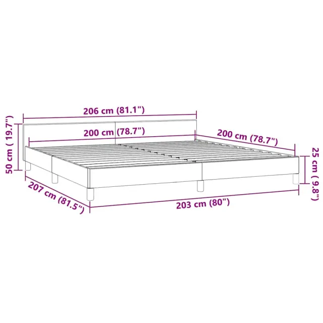 Zagotovite si boljši spanec s tem posteljnim okvirjem z vzglavjem! Je prijeten dodatek za vsako spalnico. Mehak žamet: Žamet je mehka in razkošna tkanina, ki jo prepoznamo po gostem kupu enakomerno rezanih gladkih vlaken. Žametna tkanina ima značilen mehak občutek, zaradi česar je prijetna na dotik.Podporne noge: Postelja je podprta s čvrstimi nogami, ki zagotavljajo njeno stabilnost, varnost in trdnost.Letvice iz vezanega lesa: Letvice iz vezanega lesa omogočajo dobro porazdelitev teže in zagotavljajo, da vzmetnica ostane na mestu ob vsakem zasuku in obračanju med spanjem. Opomba:Paket vsebuje samo posteljni okvir. Vzmetnica ni priložena. V naši trgovini si lahko ogledate ustrezne vzmetnice.Vsakemu izdelku je priložen priročnik za enostavno sestavljanje. Dobro je vedeti:Zaradi varčevanja s prostorom so nekateri deli ali blazine zapakirani v notranjost pohištva - preverite, ali so v predalih z zadrgo ali pod prevleko sedeža skriti kakšni sestavni deli.Barva: ČrnaMaterial: Žamet (100 % poliester), vezan les, konstruiran lesCelotne dimenzije: 207 x 206 x 50 cm (D x Š x V)Velikost primerne vzmetnice: 200 x 200 cm (Š x D) (vzmetnica ni priložena)