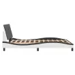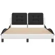 Zagotovite si boljši spanec s tem posteljnim okvirjem z vzglavjem! Je prijeten dodatek za vsako spalnico. Trpežno umetno usnje: Vrhunsko umetno usnje je zelo vzdržljiv material. Je odporno na madeže, zato ga lahko preprosto čistite z vlažno krpo. Gladka površina mu prav tako daje razkošen videz in lepoto pravega usnja.Letvice iz vezanega lesa: Letvice iz vezanega lesa omogočajo dobro porazdelitev teže in zagotavljajo, da vzmetnica ostane na mestu ob vsakem zasuku in obračanju med spanjem.Odlična podpora: Vzglavna stranica je napolnjena s peno za izjemno mehkobo in optimalno udobje ter zagotavlja odlično podporo hrbtu, ko sedite v postelji in berete ali gledate televizijo.Priročna zasnova: Oblazinjeno vzglavje ima zadrgo za enostavno namestitev.Valovita stranica: Valoviti videz posteljnega okvirja je eleganten in prefinjen. Dekorju v vašem domu dodaja sodoben in eleganten pridih ter tako postane osrednja točka spalnice. Dobro je vedeti:Vzmetnica ni priložena tej postelji. Ponujamo različno izbiro ležišč. V naši trgovini si lahko ogledate ustrezne vzmetnice.Posteljni okvir z vzglavjem:Barva: Bela in črnaMaterial: Umetno usnje (75 % polivinilklorid, 5 % bombaž, 20 % poliester), kovina, trdna borovina, vezan lesCelotne dimenzije: 208 x 145 x 74,5 cm (D x Š x V)Velikost primerne vzmetnice: 140 x 190 cm (Š x D) (vzmetnica ni priložena)Oblazinjeno vzglavje:Barva: Črna in belaMaterial: Umetno usnje (75 % polivinilklorid, 5 % bombaž, 20 % poliester)Material polnila: PenaDimenzije: 140 x 3 x 48 cm (D x Š x V)Primerna širina vzmetnice: 140 cmPotrebno sestavljanje: DaPaket vsebuje:1 x Posteljni okvir z vzglavjem1 x Oblazinjeno vzglavje