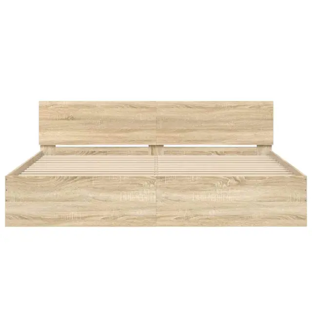 Zagotovite si boljši spanec s tem posteljnim okvirjem! Je prijeten dodatek za vsako spalnico. Vzdržljiv material: Inženirski les se ponaša z izjemno kakovostjo, gladko površino ter močjo, stabilnostjo in odpornostjo na vlago.Odlična opora: Posteljno vzglavje vam zagotavlja odlično oporo za hrbet, medtem ko sedite v postelji in berete ali gledate televizijo.Trdne letvice: Letvice iz vezanega lesa omogočajo dobro porazdelitev teže in zagotavljajo, da vzmetnica ostane na mestu ob vsakem zasuku in obračanju med spanjem. Dobro je vedeti:Vzmetnica ni priložena tej postelji. Ponujamo različno izbiro ležišč. V naši trgovini si lahko ogledate ustrezne vzmetnice.Barva: Sonoma hrastMaterial posteljnega okvirja: Inženirski lesMaterial letvic: Vezan lesCelotne dimenzije: 203 x 205 x 70 cm (D x Š x V)Velikost primerne vzmetnice: 200 x 200 cm (Š x D) (vzmetnica ni priložena)Potrebno sestavljanje: Da