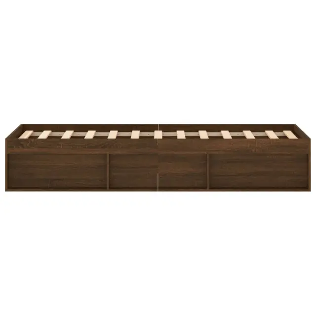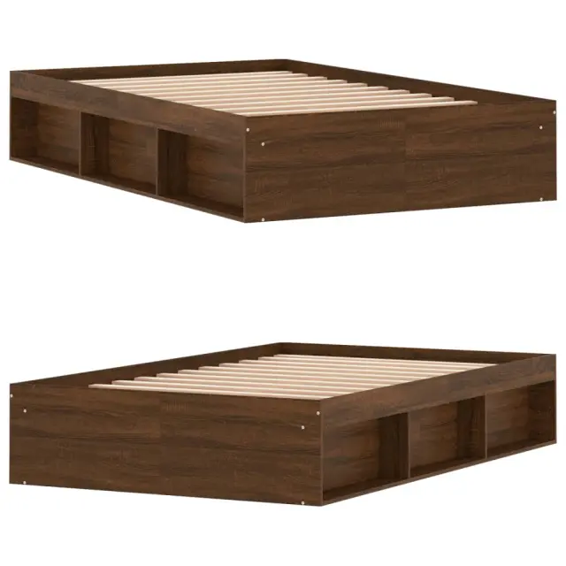 Ustvarite moderno spalnico s tem posteljnim okvirjem! To bo praktičen in okrasen dodatek za vaše notranje prostore. Vzdržljiv material: Inženirski les se ponaša z izjemno kakovostjo, gladko površino ter močjo, stabilnostjo in odpornostjo na vlago.Letvice iz vezanega lesa: Letvice iz vezanega lesa omogočajo dobro porazdelitev teže in zagotavljajo, da vzmetnica ostane na mestu ob vsakem zasuku in obračanju med spanjem.Dodaten prostor za shranjevanje: Postelja za goste ima skupno 6 predelkov na obeh straneh postelje za shranjevanje stvari, kot so knjige, lončnice in drugi okraski. Dobro je vedeti:Vzmetnica ni priložena tej postelji. Ponujamo različno izbiro ležišč. V naši trgovini si lahko ogledate ustrezne vzmetnice.Barva: Rjav hrastMaterial posteljnega okvirja: Inženirski les, trdna borovinaMaterial letvic: Vezan lesCelotne dimenzije: 193 x 123 x 35 cm (D x Š x V)Primerna velikost vzmetnice (vzmetnica ni vključena): 120 x 190 cm (Š x D) (4FT Small Double)Potrebno sestavljanje: Da