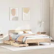 Zagotovite si boljši spanec s tem posteljnim okvirjem! Je prijeten dodatek za vsako spalnico. Stabilen in dolgotrajen okvir: Trdna borovina je znana po svoji trdnosti in trajnosti. Ravni vzorci in značilni vozli prispevajo k njenemu rustikalnemu čaru.Podnožje z letvami za optimalno podporo: Za podporo in zračnost ležišča je posteljni okvir opremljen z letvenim dnom.Vsestransko vzglavje: Ta posteljni okvir je opremljen z vzglavjem, ki zagotavlja odlično oporo hrbtu, ko sedite v postelji in berete ali gledate televizijo, hkrati pa služi tudi kot dekorativni element.Popolnoma izkoriščen prostor: Ta posteljni okvir ima spodaj dva predala, ki omogočata shranjevanje predmetov, kot so dodatna posteljnina, sezonska oblačila in igrače.Preprosto manevriranje: Ta predal za shranjevanje pod posteljo ima štiri kolesa, ki zagotavljajo gladko in lahkotno manevriranje pri drsenju pod posteljo in izpod nje. Dobro je vedeti:Vzmetnica ni priložena tej postelji. Ponujamo različno izbiro ležišč. V naši trgovini si lahko ogledate ustrezne vzmetnice.Potrebno sestavljanje: DaPosteljni okvir z vzglavjem:Material: Trdna borovina (neobdelana)Material letvic: Vezan lesDimenzije: 205,5 x 125,5 x 71,5 cm (D x Š x V)Velikost primerne vzmetnice: 120 x 200 cm (Š x D) (vzmetnica ni priložena)Predal:Material: Trdna borovina (neobdelana)Zunanje dimenzije: 95 x 55 x 16 cm (Š x G x V)Notranje dimenzije: 86,5 x 52,5 x 10 cm (Š x G x V)Maks. nosilnost (vsaka): 20 kgS štirimi kolesi Paket vsebuje:1 x Posteljni okvir z vzglavjem2 x Predal