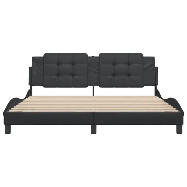 Zagotovite si boljši spanec s tem posteljnim okvirjem z vzglavjem! Je prijeten dodatek za vsako spalnico. Trpežno umetno usnje: Vrhunsko umetno usnje je zelo vzdržljiv material. Je odporno na madeže, zato ga lahko preprosto čistite z vlažno krpo. Gladka površina mu prav tako daje razkošen videz in lepoto pravega usnja.Letvice iz vezanega lesa: Letvice iz vezanega lesa omogočajo dobro porazdelitev teže in zagotavljajo, da vzmetnica ostane na mestu ob vsakem zasuku in obračanju med spanjem.Odlična podpora: Vzglavna stranica je napolnjena s peno za izjemno mehkobo in optimalno udobje ter zagotavlja odlično podporo hrbtu, ko sedite v postelji in berete ali gledate televizijo.Priročna zasnova: Oblazinjeno vzglavje ima zadrgo za enostavno namestitev.Valovita stranica: Valoviti videz posteljnega okvirja je eleganten in prefinjen. Dekorju v vašem domu dodaja sodoben in eleganten pridih ter tako postane osrednja točka spalnice. Dobro je vedeti:Vzmetnica ni priložena tej postelji. Ponujamo različno izbiro ležišč. V naši trgovini si lahko ogledate ustrezne vzmetnice.Posteljni okvir z vzglavjem:Barva: ČrnaMaterial: Umetno usnje (75 % polivinilklorid, 5 % bombaž, 20 % poliester), kovina, trdna borovina, vezan lesCelotne dimenzije: 218 x 185 x 74,5 cm (D x Š x V)Velikost primerne vzmetnice: 180 x 200 cm (Š x D) (vzmetnica ni priložena)Oblazinjeno vzglavje:Barva: ČrnaMaterial: Umetno usnje (75 % polivinilklorid, 5 % bombaž, 20 % poliester)Material polnila: PenaDimenzije: 180 x 3 x 48 cm (D x Š x V)Širina primerne vzmetnice: 180 cmPotrebno sestavljanje: DaPaket vsebuje:1 x Posteljni okvir z vzglavjem1 x Oblazinjeno vzglavje