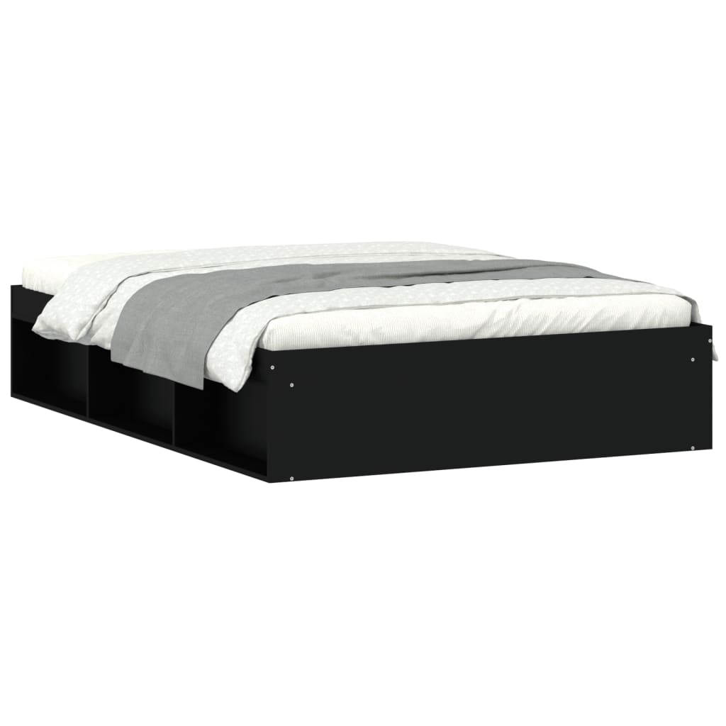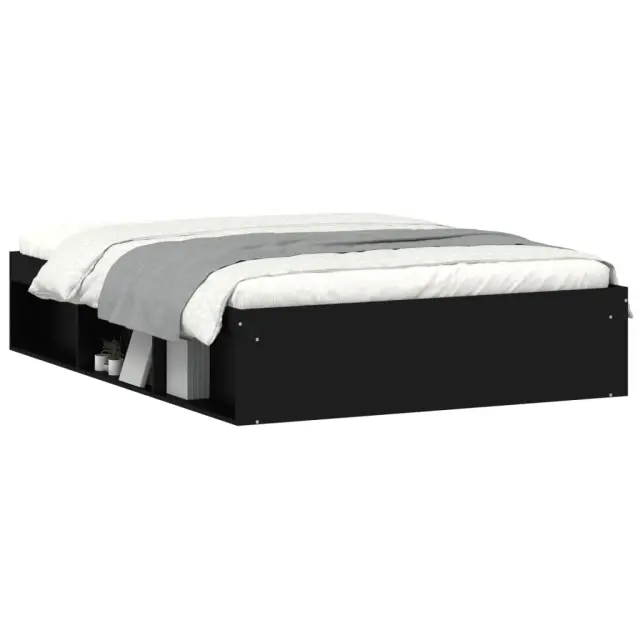 Ustvarite moderno spalnico s tem posteljnim okvirjem! To bo praktičen in okrasen dodatek za vaše notranje prostore. Vzdržljiv material: Inženirski les se ponaša z izjemno kakovostjo, gladko površino ter močjo, stabilnostjo in odpornostjo na vlago.Letvice iz vezanega lesa: Letvice iz vezanega lesa omogočajo dobro porazdelitev teže in zagotavljajo, da vzmetnica ostane na mestu ob vsakem zasuku in obračanju med spanjem.Dodaten prostor za shranjevanje: Postelja za goste ima skupno 6 predelkov na obeh straneh postelje za shranjevanje stvari, kot so knjige, lončnice in drugi okraski. Dobro je vedeti:Vzmetnica ni priložena tej postelji. Ponujamo različno izbiro ležišč. V naši trgovini si lahko ogledate ustrezne vzmetnice.Barva: ČrnaMaterial posteljnega okvirja: Inženirski les, trdna borovinaMaterial letvic: Vezan lesCelotne dimenzije: 193 x 138 x 35 cm (D x Š x V)Primerna velikost vzmetnice (vzmetnica ni vključena): 135 x 190 cm (Š x D) (4FT6 Double)Potrebno sestavljanje: Da