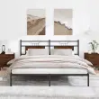 Zagotovite si boljši spanec s tem posteljnim okvirjem! Je prijeten dodatek za vsako spalnico. Stabilen in dolgotrajen okvir: Jeklo je močno, stabilno in trpežno, zato je idealna izbira za številne aplikacije, od proizvodnje pohištva do gradbeništva.Vsestransko vzglavje: Ta postelja je opremljena z vzglavjem, ki zagotavlja odlično oporo hrbtu, ko sedite v postelji in berete ali gledate televizijo, hkrati pa služi tudi kot dekorativni element.Dodaten prostor za shranjevanje: Za udobje ima posteljni podstavek pod seboj dodaten prostor, v katerem lahko shranite škatle za shranjevanje, ki niso vidne.Podnožje z letvami za optimalno podporo: Kovinski posteljni okvir je opremljen z letvenim dnom, ki zagotavlja oporo in zračnost ležišča. Dobro je vedeti:Vzmetnica ni priložena tej postelji. Ponujamo različno izbiro ležišč. V naši trgovini si lahko ogledate ustrezne vzmetnice.Barva: Dimljeni hrastMaterial: Inženirski les in jekloCelotne dimenzije: 207 x 167 x 91,5 cm (D x Š x V)Višina prostora pod posteljo: 27 cmVelikost primerne vzmetnice: 160 x 200 cm (Š x D) (vzmetnica ni priložena)Z vzglavjemPotrebno sestavljanje: Da