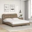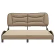 Zagotovite si boljši spanec s tem posteljnim okvirjem z vzglavjem! Je prijeten dodatek za vsako spalnico. Trpežno umetno usnje: Vrhunsko umetno usnje je zelo vzdržljiv material. Je odporno na madeže, zato ga lahko preprosto čistite z vlažno krpo. Gladka površina mu prav tako daje razkošen videz in lepoto pravega usnja.Letvice iz vezanega lesa: Letvice iz vezanega lesa omogočajo dobro porazdelitev teže in zagotavljajo, da vzmetnica ostane na mestu ob vsakem zasuku in obračanju med spanjem.Odlična podpora: Vzglavna stranica je napolnjena s PP vlakni za izjemno mehkobo in optimalno udobje ter zagotavlja odlično podporo hrbtu, ko sedite v postelji in berete ali gledate televizijo.Valovita stranica: Valoviti videz posteljnega okvirja je eleganten in prefinjen. Dekorju v vašem domu dodaja sodoben in eleganten pridih ter tako postane osrednja točka spalnice. Dobro je vedeti:Vzmetnica ni priložena tej postelji. Ponujamo različno izbiro ležišč. V naši trgovini si lahko ogledate ustrezne vzmetnice.Posteljni okvir z vzglavjem:Barva: KapučinoMaterial: Umetno usnje (75 % polivinilklorid, 5 % bombaž, 20 % poliester), kovina, trdna borovina, vezan lesCelotne dimenzije: 218 x 165 x 74,5 cm (D x Š x V)Velikost primerne vzmetnice: 160 x 200 cm (Š x D) (vzmetnica ni priložena)Oblazinjeno vzglavje:Barva: KapučinoMaterial: Umetno usnje (75 % polivinilklorid, 5 % bombaž, 20 % poliester)Material polnila: PP vlaknaDimenzije: 170 x 15 x 48 cm (D x Š x V)Primerna širina vzmetnice: 160 cmPotrebno sestavljanje: DaPaket vsebuje:1 x Posteljni okvir z vzglavjem1 x Oblazinjeno vzglavje