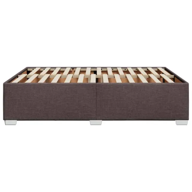 Zagotovite si boljši spanec s tem posteljnim okvirjem! Je prijeten dodatek za vsako spalnico. Mehak in trpežen material: Tkanina iz poliestra združuje mehkobo, zračnost in trpežnost ter vam zagotavlja popolno udobje in prijetnost.Letvice za optimalno podporo: Ta posteljni okvir je opremljen z letvicami, ki zagotavljajo osnovno podporo in zračnost vašega ležišča.Stabilne in vzdržljive noge: Ta postelja je podprta z robustnimi nogami, ki zagotavljajo stabilnost, varnost in trdnost. Dobro je vedeti:Vzmetnica ni priložena tej postelji. Ponujamo različno izbiro ležišč. V naši trgovini si lahko ogledate ustrezne vzmetnice.Barva: Temno rjavaMaterial: Tkanina (100 % poliester), vezan les, inženirski les, trdna borovinaDimenzije: 190 x 140 x 46 cm (D x Š x V)Velikost primerne vzmetnice: 140 x 190 cm (Š x D) (vzmetnica ni priložena)Utrjene plastične nogicePodporne noge iz trdnega borovega lesaPotrebno sestavljanje: Da