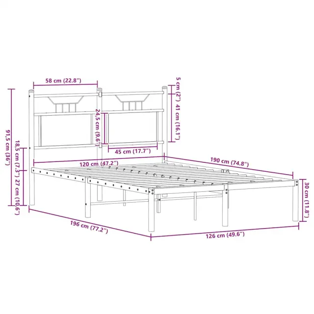 Zagotovite si boljši spanec s tem posteljnim okvirjem! Je prijeten dodatek za vsako spalnico. Stabilen in dolgotrajen okvir: Jeklo je močno, stabilno in trpežno, zato je idealna izbira za številne aplikacije, od proizvodnje pohištva do gradbeništva.Vsestransko vzglavje: Ta postelja je opremljena z vzglavjem, ki zagotavlja odlično oporo hrbtu, ko sedite v postelji in berete ali gledate televizijo, hkrati pa služi tudi kot dekorativni element.Dodaten prostor za shranjevanje: Za udobje ima posteljni podstavek pod seboj dodaten prostor, v katerem lahko shranite škatle za shranjevanje, ki niso vidne.Podnožje z letvami za optimalno podporo: Kovinski posteljni okvir je opremljen z letvenim dnom, ki zagotavlja oporo in zračnost ležišča. Dobro je vedeti:Vzmetnica ni priložena tej postelji. Ponujamo različno izbiro ležišč. V naši trgovini si lahko ogledate ustrezne vzmetnice.Barva: Dimljeni hrastMaterial: Inženirski les in jekloCelotne dimenzije: 196 x 126 x 91,5 cm (D x Š x V)Višina prostora pod posteljo: 27 cmVelikost primerne vzmetnice: 120 x 190 cm (Š x D) (vzmetnica ni priložena)Z vzglavjemPotrebno sestavljanje: Da