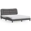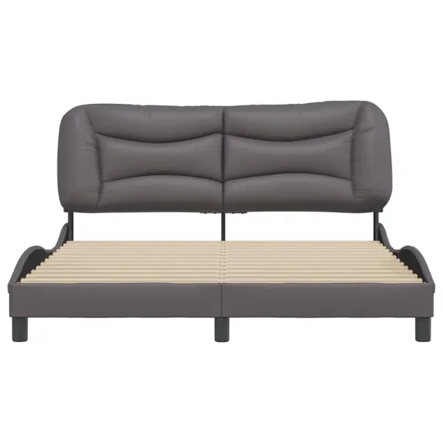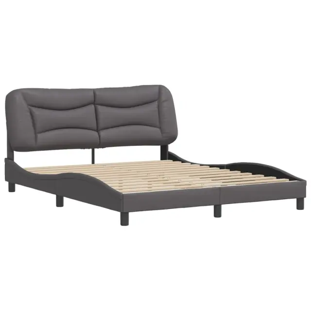 Zagotovite si boljši spanec s tem posteljnim okvirjem z vzglavjem! Je prijeten dodatek za vsako spalnico. Trpežno umetno usnje: Vrhunsko umetno usnje je zelo vzdržljiv material. Je odporno na madeže, zato ga lahko preprosto čistite z vlažno krpo. Gladka površina mu prav tako daje razkošen videz in lepoto pravega usnja.Letvice iz vezanega lesa: Letvice iz vezanega lesa omogočajo dobro porazdelitev teže in zagotavljajo, da vzmetnica ostane na mestu ob vsakem zasuku in obračanju med spanjem.Odlična podpora: Vzglavna stranica je napolnjena s PP vlakni za izjemno mehkobo in optimalno udobje ter zagotavlja odlično podporo hrbtu, ko sedite v postelji in berete ali gledate televizijo.Valovita stranica: Valoviti videz posteljnega okvirja je eleganten in prefinjen. Dekorju v vašem domu dodaja sodoben in eleganten pridih ter tako postane osrednja točka spalnice. Dobro je vedeti:Vzmetnica ni priložena tej postelji. Ponujamo različno izbiro ležišč. V naši trgovini si lahko ogledate ustrezne vzmetnice.Posteljni okvir z vzglavjem:Barva: SivaMaterial: Umetno usnje (75 % polivinilklorid, 5 % bombaž, 20 % poliester), kovina, trdna borovina, vezan lesCelotne dimenzije: 218 x 165 x 74,5 cm (D x Š x V)Velikost primerne vzmetnice: 160 x 200 cm (Š x D) (vzmetnica ni priložena)Oblazinjeno vzglavje:Barva: SivaMaterial: Umetno usnje (75 % polivinilklorid, 5 % bombaž, 20 % poliester)Material polnila: PP vlaknaDimenzije: 170 x 15 x 48 cm (D x Š x V)Primerna širina vzmetnice: 160 cmPotrebno sestavljanje: DaPaket vsebuje:1 x Posteljni okvir z vzglavjem1 x Oblazinjeno vzglavje