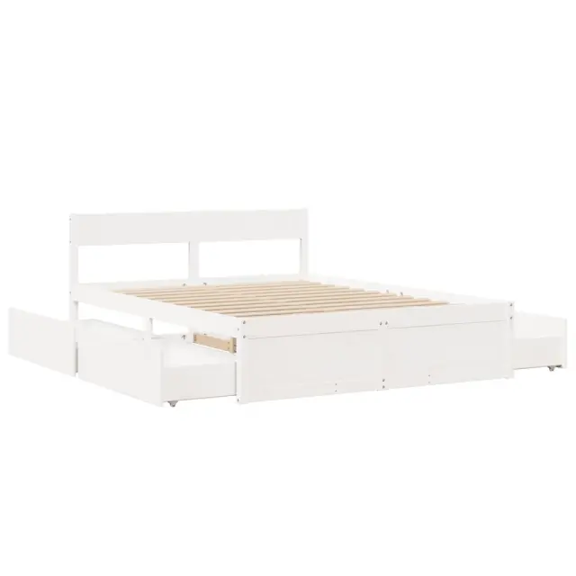 Dodajte svoji spalnici moderen pridih s tem posteljnim okvirjem s predali! Predstavlja praktičen in dekorativen dodatek za vaš bivalni prostor. Stabilen in dolgotrajen okvir: Trdna borovina je znana po svoji trdnosti in trajnosti. Ravni vzorci in značilni vozli prispevajo k njenemu rustikalnemu čaru.Letvice iz vezanega lesa: Letvice iz vezanega lesa omogočajo dobro porazdelitev teže in zagotavljajo, da vzmetnica ostane na mestu ob vsakem zasuku in obračanju med spanjem.Funkcija shranjevanja: Priloženi posteljni predali nudijo dovolj prostora za shranjevanje potrebščin, da bo soba čista in urejena.Vsestransko vzglavje: Ta posteljni okvir je opremljen z vzglavjem, ki zagotavlja odlično oporo hrbtu, ko sedite v postelji in berete ali gledate televizijo, hkrati pa služi tudi kot dekorativni element. Dobro je vedeti:Vzmetnica ni priložena tej postelji. Ponujamo različno izbiro ležišč. V naši trgovini si lahko ogledate ustrezne vzmetnice.Barva: BelaMaterial: Trdna borovinaMaterial letvic: Vezan lesCelotne dimenzije: 205,5 x 145,5 x 78 cm (D x Š x V)Velikost primerne vzmetnice: 140 x 200 cm (Š x D) (vzmetnica ni priložena)Dimenzije posteljnega predala: 95,5 x 47 x 25,5 cm (D x Š x V)Potrebno sestavljanje: DaPaket vsebuje:1 x Posteljni okvir4 x Posteljni predal