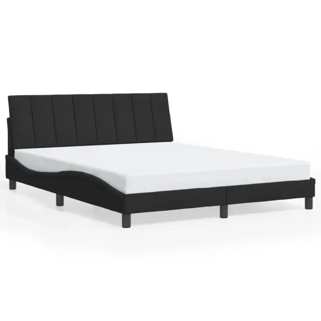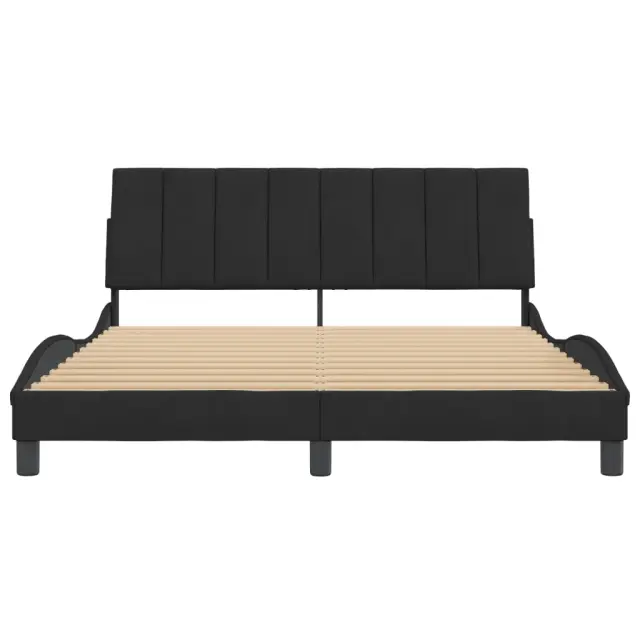 Zagotovite si boljši spanec s tem posteljnim okvirjem z vzglavjem! Je prijeten dodatek za vsako spalnico. Mehak žamet: Žamet je mehka in udobna tkanina, ki je prijetna do kože.Letvice iz vezanega lesa: Letvice iz vezanega lesa omogočajo dobro porazdelitev teže in zagotavljajo, da vzmetnica ostane na mestu ob vsakem zasuku in obračanju med spanjem.Odlična podpora: Vzglavna stranica je napolnjena s peno za izjemno mehkobo in optimalno udobje ter zagotavlja odlično podporo hrbtu, ko sedite v postelji in berete ali gledate televizijo.Priročna zasnova: Vzglavna stranica ima zadrgo za preprosto namestitev, pripenjala na zadnji strani pa se lahko uporabijo za pritrditev LED lučk.Valovita stranica: Valoviti videz posteljnega okvirja je eleganten in prefinjen. Dekorju v vašem domu dodaja sodoben in eleganten pridih ter tako postane osrednja točka spalnice. Dobro je vedeti:Vzmetnica ni priložena tej postelji. Ponujamo različno izbiro ležišč. V naši trgovini si lahko ogledate ustrezne vzmetnice.Posteljni okvir z vzglavjem:Barva: ČrnaMaterial: Žamet (100 % poliester), kovina, trdna borovina, vezan les, inženirski lesCelotne dimenzije: 218 x 165 x 74,5 cm (D x Š x V)Velikost primerne vzmetnice: 160 x 200 cm (Š x D) (vzmetnica ni priložena)Oblazinjeno vzglavje:Barva: ČrnaMaterial: Žamet (100 % poliester)Material polnila: PenaDimenzije: 160 x 3 x 45 cm (D x Š x V)Primerna širina vzmetnice: 160 cmPotrebno sestavljanje: DaPaket vsebuje:1 x Posteljni okvir z vzglavjem1 x Oblazinjeno vzglavje