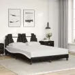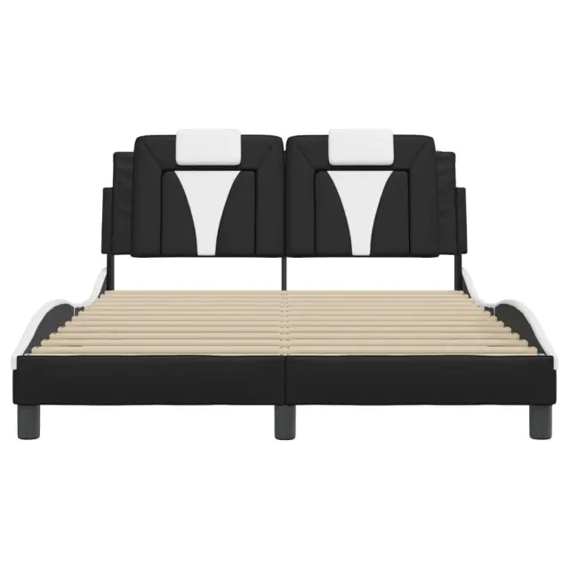 Zagotovite si boljši spanec s tem posteljnim okvirjem z vzglavjem! Je prijeten dodatek za vsako spalnico. Trpežno umetno usnje: Vrhunsko umetno usnje je zelo vzdržljiv material. Je odporno na madeže, zato ga lahko preprosto čistite z vlažno krpo. Gladka površina mu prav tako daje razkošen videz in lepoto pravega usnja.Letvice iz vezanega lesa: Letvice iz vezanega lesa omogočajo dobro porazdelitev teže in zagotavljajo, da vzmetnica ostane na mestu ob vsakem zasuku in obračanju med spanjem.Odlična podpora: Vzglavna stranica je napolnjena s peno za izjemno mehkobo in optimalno udobje ter zagotavlja odlično podporo hrbtu, ko sedite v postelji in berete ali gledate televizijo.Valovita stranica: Valoviti videz posteljnega okvirja je eleganten in prefinjen. Dekorju v vašem domu dodaja sodoben in eleganten pridih ter tako postane osrednja točka spalnice. Dobro je vedeti:Vzmetnica ni priložena tej postelji. Ponujamo različno izbiro ležišč. V naši trgovini si lahko ogledate ustrezne vzmetnice.Posteljni okvir z vzglavjem:Barva: Črna in belaMaterial: Umetno usnje (75 % polivinilklorid, 5 % bombaž, 20 % poliester), kovina, trdna borovina, vezan lesCelotne dimenzije: 218 x 145 x 74,5 cm (D x Š x V)Velikost primerne vzmetnice: 140 x 200 cm (Š x D) (vzmetnica ni priložena)Oblazinjeno vzglavje:Barva: ČrnaMaterial: Umetno usnje (75 % polivinilklorid, 5 % bombaž, 20 % poliester)Material polnila: PenaDimenzije: 140 x 15 x 49 cm (D x Š x V)Primerna širina vzmetnice: 140 cmPotrebno sestavljanje: DaPaket vsebuje:1 x Posteljni okvir z vzglavjem1 x Oblazinjeno vzglavje