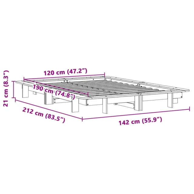 Zagotovite si boljši spanec s tem posteljnim okvirjem! Je prijeten dodatek za vsako spalnico. Stabilen in dolgotrajen okvir: Trdna borovina je znana po svoji trdnosti in trajnosti. Ravni vzorci in značilni vozli prispevajo k njenemu rustikalnemu čaru.Letvice za optimalno podporo: Okvir postelje je opremljen z letvicami, ki zagotavljajo osnovno podporo in zračnost vašega ležišča.Moderna zasnova: Svojim notranjim prostorom dodajte moderen stil! Moderen stil notranjih prostorov vključuje čiste linije, minimalističen videz in naravno svetlobo. Dobro je vedeti:Vzmetnica ni priložena tej postelji. Ponujamo različno izbiro ležišč. V naši trgovini si lahko ogledate ustrezne vzmetnice.Barva: Voščeno rjavaMaterial posteljnega okvirja: Trdna borovinaMaterial letvic: Vezan lesDimenzije: 212 x 142 x 21 cm (D x Š x V)Velikost primerne vzmetnice: 120 x 190 cm (Š x D) (vzmetnica ni priložena)Z letvenim podomPotrebno sestavljanje: Da