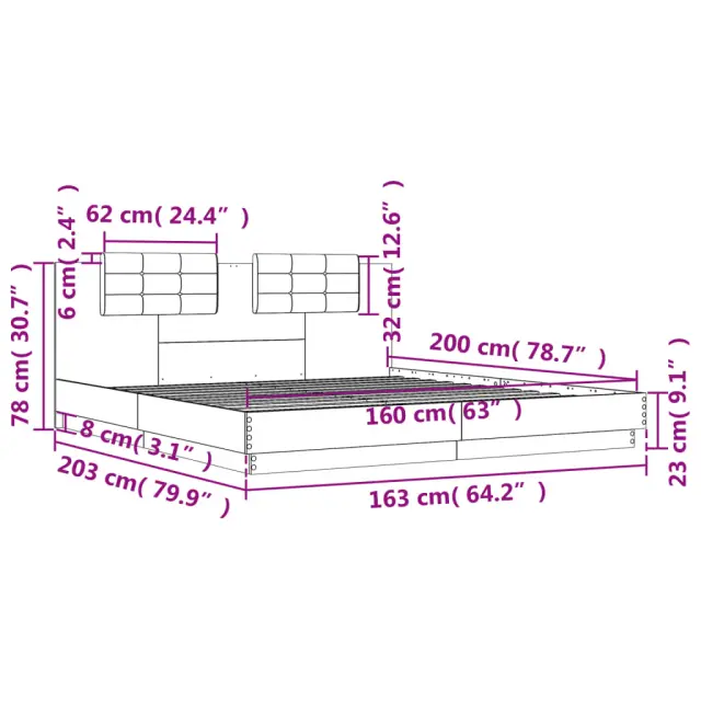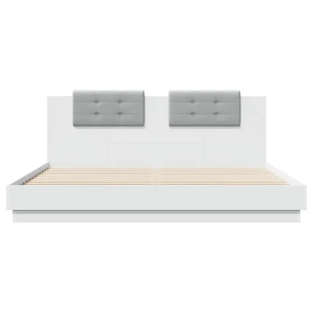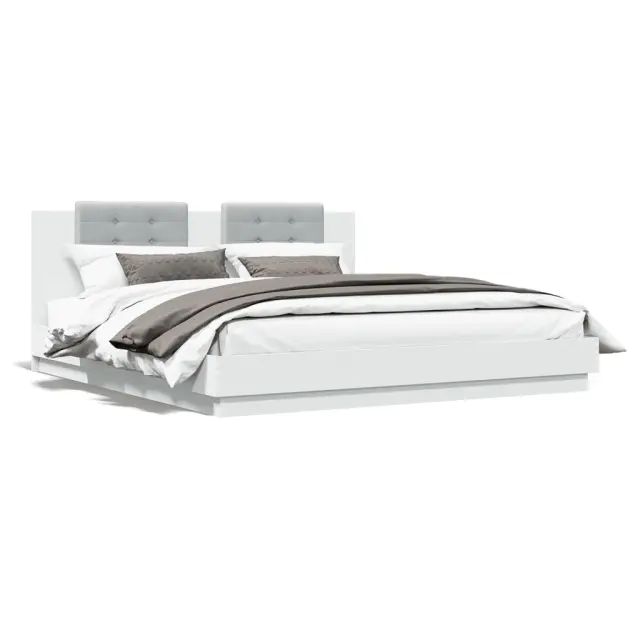 Zagotovite si boljši spanec s tem posteljnim okvirjem z vzglavjem! Je prijeten dodatek za vsako spalnico. Vzdržljiv material: Inženirski les se ponaša z izjemno kakovostjo, gladko površino ter močjo, stabilnostjo in odpornostjo na vlago.Letvice iz vezanega lesa: Letvice iz vezanega lesa omogočajo dobro porazdelitev teže in zagotavljajo, da vzmetnica ostane na mestu ob vsakem zasuku in obračanju med spanjem.Odlična podpora: Vzglavna stranica je napolnjena s peno za izjemno mehkobo in optimalno udobje ter zagotavlja odlično podporo hrbtu, ko sedite v postelji in berete ali gledate televizijo. Dobro je vedeti:Vzmetnica ni priložena tej postelji. Ponujamo različno izbiro ležišč. V naši trgovini si lahko ogledate ustrezne vzmetnice.Barva postelje: BelaBarva blazine za vzglavje: Svetlo sivaMaterial posteljnega okvirja: Inženirski les, tkanina (100 % poliester)Material letvic: Vezan lesMaterial polnila blazine za vzglavje: PenaCelotne dimenzije: 203 x 163 x 84 cm (D x Š x V)Velikost primerne vzmetnice: 160 x 200 cm (Š x D) (vzmetnica ni priložena)Velikost blazine za vzglavje: 62 x 32 cm (D x Š)Potrebno sestavljanje: Da