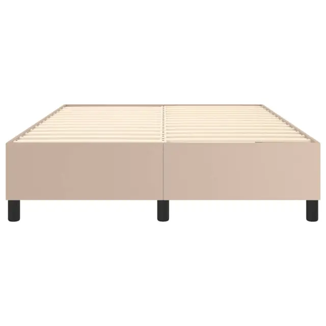 Zagotovite si boljši spanec s tem posteljnim okvirjem! Je prijeten dodatek za vsako spalnico. Trpežno umetno usnje: Vrhunsko umetno usnje je zelo vzdržljiv material. Je odporno na madeže, zato ga lahko preprosto čistite z vlažno krpo. Gladka površina mu prav tako daje razkošen videz in lepoto pravega usnja.Podporne noge: Postelja je podprta s čvrstimi nogami, ki zagotavljajo njeno stabilnost, varnost in trdnost.Letvice iz vezanega lesa: Letvice iz vezanega lesa omogočajo dobro porazdelitev teže in zagotavljajo, da vzmetnica ostane na mestu ob vsakem zasuku in obračanju med spanjem. Dobro je vedeti:Vzmetnica ni priložena tej postelji. Ponujamo različno izbiro ležišč. V naši trgovini si lahko ogledate ustrezne vzmetnice.Barva: KapučinoMaterial: Umetno usnje (75 % polivinilklorid, 5 % bombaž, 20 % poliester), vezan les, konstruiran lesCelotne dimenzije: 203 x 140 x 35 cm (D x Š x V)Velikost primerne vzmetnice: 140 x 200 cm (Š x D) (vzmetnica ni priložena)