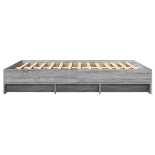 Zagotovite si boljši spanec s tem posteljnim okvirjem! Je prijeten dodatek za vsako spalnico. Vzdržljiv material: Posteljni okvir je izdelan iz inženirskega lesa. Inženirski les se ponaša z izjemno kakovostjo, gladko površino ter močjo, stabilnostjo in odpornostjo na vlago.Podnožje z letvami za optimalno podporo: Za podporo in zračnost ležišča je posteljni okvir opremljen z letvenim dnom.Funkcija shranjevanja: Ta posteljni okvir ima odprte predelke za dobro organizacijo revij, knjig, igrač in drugih manjših predmetov. Dobro je vedeti:Vzmetnica ni priložena tej postelji. Ponujamo različno izbiro ležišč. V naši trgovini si lahko ogledate ustrezne vzmetnice.Barva: Siva sonomaMaterial posteljnega okvirja: Inženirski lesMaterial letvic: Vezan lesCelotne dimenzije: 203 x 163 x 35 cm (D x Š x V)Dimenzije predelka (vsak): 68,5/60 x 18,5 x 15 cm (D x Š x V)Velikost primerne vzmetnice: 160 x 200 cm (Š x D) (vzmetnica ni priložena)Potrebno sestavljanje: Da
