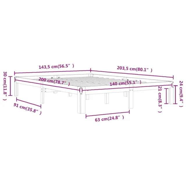 Ustvarite moderno spalnico s tem lesenim posteljnim okvirjem! To je praktičen in dekorativen dodatek za vaše notranje prostore. Vrhunski material: Trdna borovina je čudovit naravni material. Površino obdelajte z oljem, voskom, lakom ali glazurnim premazom za močnejšo površino in enostavno čiščenje. Borovina ima ravne vzorce, grče pa dajejo materialu njegov značilen, rustikalen videz.Močan in stabilen okvir: Lesen okvir omarice zagotavlja trdnost in stabilnost.Dodatna podpora: Letveno dno iz trdne borovine vaši postelji zagotavlja dodatno podporo. Podaljša življenjsko dobo vaše vzmetnice, saj absorbira večino obremenitev in teže na postelji. Opomba:Paket vsebuje samo posteljni okvir. Vzmetnica ni priložena. V naši trgovini si lahko ogledate ustrezne vzmetnice.Ta posteljni okvir je primeren za vzmetnico velikosti 140 x 200 cm.Barva: BelaMaterial: Trdna borovinaCelotne dimenzije: 203,5 x 143,5 x 30 cm (D x Š x V)Velikost primerne vzmetnice: 140 x 200 cm (Š x D) (vzmetnica ni priložena)Višina ležišča, merjena od tal: 24 cmPotrebno sestavljanje: Da