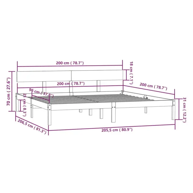 Ustvarite moderno spalnico s tem lesenim posteljnim okvirjem! To je praktičen in dekorativen dodatek za vaše notranje prostore. Podnožje je izdelano iz trdne borovine ter je zelo močno in vzdržljivo. Močne letvice ponujajo potrebno podporo, klasično vzglavje pa omogoča udobno počivanje med branjem ali gledanjem filma. Ta zakonska postelja je primerna za vzmetnico 200x200 cm. Na tej postelji lahko vsako noč uživate v odličnem spancu! Opomba: Paket vsebuje samo posteljni okvir. Vzmetnica ni priložena.Barva: SivaMaterial: Trdna borovinaDimenzije: 206,5 x 205,5 x 70 cm (D x Š x V)Velikost primerne vzmetnice: 200 x 200 cm (Š x D) (vzmetnica ni priložena)Z vzglavjemPotrebno sestavljanje: Da