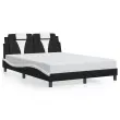 Zagotovite si boljši spanec s tem posteljnim okvirjem z vzglavjem! Je prijeten dodatek za vsako spalnico. Trpežno umetno usnje: Vrhunsko umetno usnje je zelo vzdržljiv material. Je odporno na madeže, zato ga lahko preprosto čistite z vlažno krpo. Gladka površina mu prav tako daje razkošen videz in lepoto pravega usnja.Letvice iz vezanega lesa: Letvice iz vezanega lesa omogočajo dobro porazdelitev teže in zagotavljajo, da vzmetnica ostane na mestu ob vsakem zasuku in obračanju med spanjem.Odlična podpora: Vzglavna stranica je napolnjena s peno za izjemno mehkobo in optimalno udobje ter zagotavlja odlično podporo hrbtu, ko sedite v postelji in berete ali gledate televizijo.Valovita stranica: Valoviti videz posteljnega okvirja je eleganten in prefinjen. Dekorju v vašem domu dodaja sodoben in eleganten pridih ter tako postane osrednja točka spalnice. Dobro je vedeti:Vzmetnica ni priložena tej postelji. Ponujamo različno izbiro ležišč. V naši trgovini si lahko ogledate ustrezne vzmetnice.Posteljni okvir z vzglavjem:Barva: Črna in belaMaterial: Umetno usnje (75 % polivinilklorid, 5 % bombaž, 20 % poliester), kovina, trdna borovina, vezan lesCelotne dimenzije: 218 x 125 x 74,5 cm (D x Š x V)Velikost primerne vzmetnice: 120 x 200 cm (Š x D) (vzmetnica ni priložena)Oblazinjeno vzglavje:Barva: ČrnaMaterial: Umetno usnje (75 % polivinilklorid, 5 % bombaž, 20 % poliester)Material polnila: PenaDimenzije: 120 x 15 x 49 cm (D x Š x V)Primerna širina vzmetnice: 120 cmPotrebno sestavljanje: DaPaket vsebuje:1 x Posteljni okvir z vzglavjem1 x Oblazinjeno vzglavje