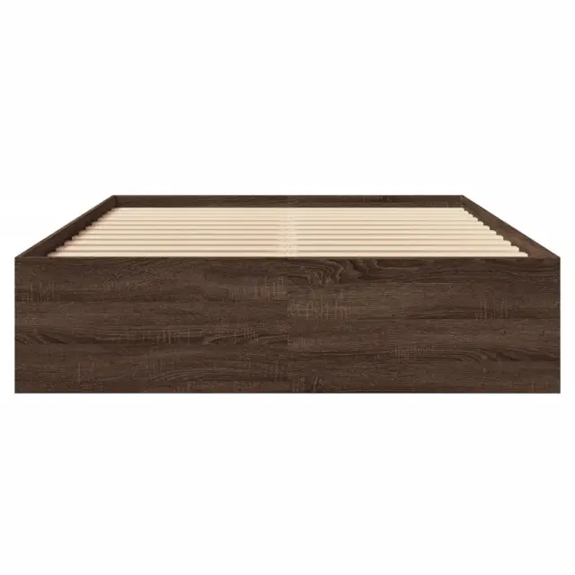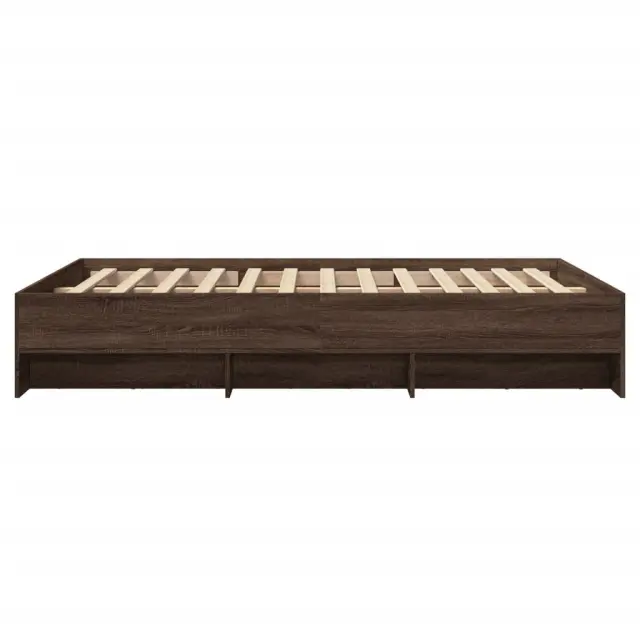 Zagotovite si boljši spanec s tem posteljnim okvirjem! Je prijeten dodatek za vsako spalnico. Vzdržljiv material: Posteljni okvir je izdelan iz inženirskega lesa. Inženirski les se ponaša z izjemno kakovostjo, gladko površino ter močjo, stabilnostjo in odpornostjo na vlago.Podnožje z letvami za optimalno podporo: Za podporo in zračnost ležišča je posteljni okvir opremljen z letvenim dnom.Funkcija shranjevanja: Ta posteljni okvir ima odprte predelke za dobro organizacijo revij, knjig, igrač in drugih manjših predmetov. Dobro je vedeti:Vzmetnica ni priložena tej postelji. Ponujamo različno izbiro ležišč. V naši trgovini si lahko ogledate ustrezne vzmetnice.Barva: Rjav hrastMaterial posteljnega okvirja: Inženirski lesMaterial letvic: Vezan lesCelotne dimenzije: 203 x 123 x 35 cm (D x Š x V)Dimenzije predelka (vsak): 68,5/60 x 18,5 x 15 cm (D x Š x V)Velikost primerne vzmetnice: 120 x 200 cm (Š x D) (vzmetnica ni priložena)Potrebno sestavljanje: Da
