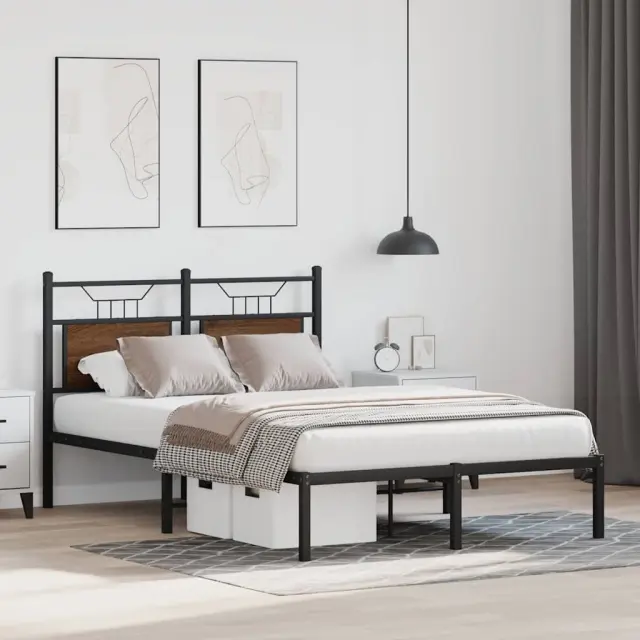 Zagotovite si boljši spanec s tem posteljnim okvirjem! Je prijeten dodatek za vsako spalnico. Stabilen in dolgotrajen okvir: Jeklo je močno, stabilno in trpežno, zato je idealna izbira za številne aplikacije, od proizvodnje pohištva do gradbeništva.Vsestransko vzglavje: Ta postelja je opremljena z vzglavjem, ki zagotavlja odlično oporo hrbtu, ko sedite v postelji in berete ali gledate televizijo, hkrati pa služi tudi kot dekorativni element.Dodaten prostor za shranjevanje: Za udobje ima posteljni podstavek pod seboj dodaten prostor, v katerem lahko shranite škatle za shranjevanje, ki niso vidne.Podnožje z letvami za optimalno podporo: Kovinski posteljni okvir je opremljen z letvenim dnom, ki zagotavlja oporo in zračnost ležišča. Dobro je vedeti:Vzmetnica ni priložena tej postelji. Ponujamo različno izbiro ležišč. V naši trgovini si lahko ogledate ustrezne vzmetnice.Barva: Dimljeni hrastMaterial: Inženirski les in jekloCelotne dimenzije: 196 x 126 x 91,5 cm (D x Š x V)Višina prostora pod posteljo: 27 cmVelikost primerne vzmetnice: 120 x 190 cm (Š x D) (vzmetnica ni priložena)Z vzglavjemPotrebno sestavljanje: Da