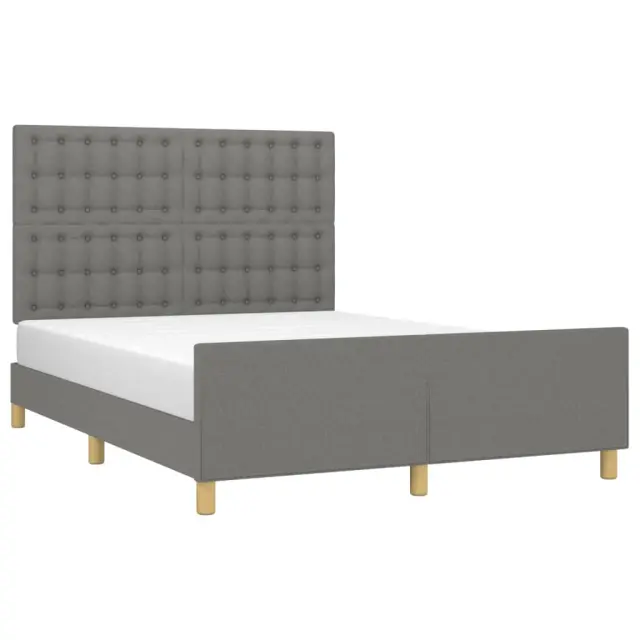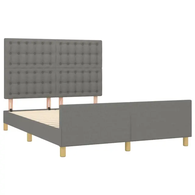 Zagotovite si boljši spanec s tem posteljnim okvirjem z vzglavjem! Je prijeten dodatek za vsako spalnico. Trpežno blago: Blago zagotavlja preprost in čist videz, poleg tega pa je zračno in trpežno.Nastavljiva višina: Vzglavje postelje je nastavljivo po višini po vaših željah.Podporne noge: Postelja je podprta s čvrstimi nogami, ki zagotavljajo njeno stabilnost, varnost in trdnost.Letvice iz vezanega lesa: Letvice iz vezanega lesa omogočajo dobro porazdelitev teže in zagotavljajo, da vzmetnica ostane na mestu ob vsakem zasuku in obračanju med spanjem.Udobna opora: To vzglavje za posteljo vam zagotavlja odlično oporo za hrbet, ko sedite na postelji in berete ali gledate filme. Opomba:Paket vsebuje samo posteljni okvir. Vzmetnica ni priložena. V naši trgovini si lahko ogledate ustrezne vzmetnice.Vsakemu izdelku je priložen priročnik za enostavno sestavljanje.Barva: Temno sivaMaterial: Blago (100 % poliester), trden macesnov les, vezan les, inženirski lesMaterial polnila: PenaCelotne dimenzije: 193 x 146 x 118/128 cm (D x Š x V)Velikost primerne vzmetnice: 140 x 190 cm (Š x D) (vzmetnica ni priložena)Paket vsebuje:1 x Posteljni okvir z vznožjem1 x Vzglavje