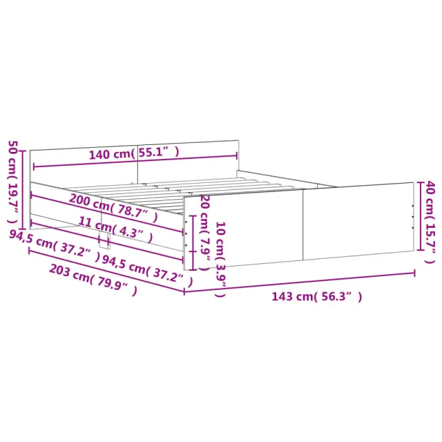 Zagotovite si boljši spanec s tem posteljnim okvirjem! Je prijeten dodatek za vsako spalnico. Vzdržljiv material: Inženirski les se ponaša z izjemno kakovostjo, gladko površino ter močjo, stabilnostjo in odpornostjo na vlago.Funkcionalno vzglavje in podnožje: Vzglavje in podnožje posteljnega dna ohranjata ležišče na mestu. Poleg tega vzglavje zagotavlja odlično oporo hrbtu, ko sedite v postelji in berete ali gledate televizijo.Trdne letvice: Letvice iz vezanega lesa omogočajo dobro porazdelitev teže in zagotavljajo, da vzmetnica ostane na mestu ob vsakem zasuku in obračanju med spanjem. Dobro je vedeti:Vzmetnica ni priložena tej postelji. Ponujamo različno izbiro ležišč. V naši trgovini si lahko ogledate ustrezne vzmetnice.Barva: Siva sonoma Material posteljnega okvirja: Inženirski les, trdna borovinaMaterial letvic: Vezan lesCelotne dimenzije: 203 x 143 x 50 cm (D x Š x V)Velikost primerne vzmetnice: 140 x 200 cm (Š x D) (vzmetnica ni priložena)Potrebno sestavljanje: Da