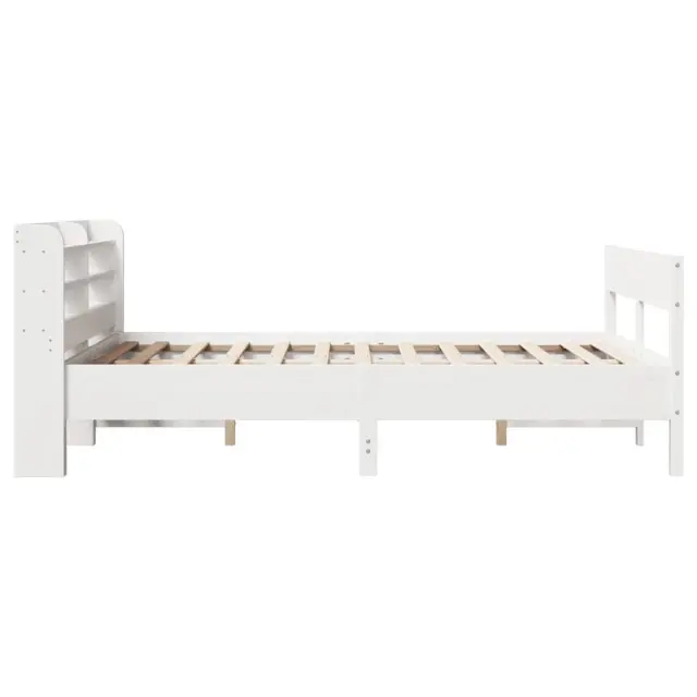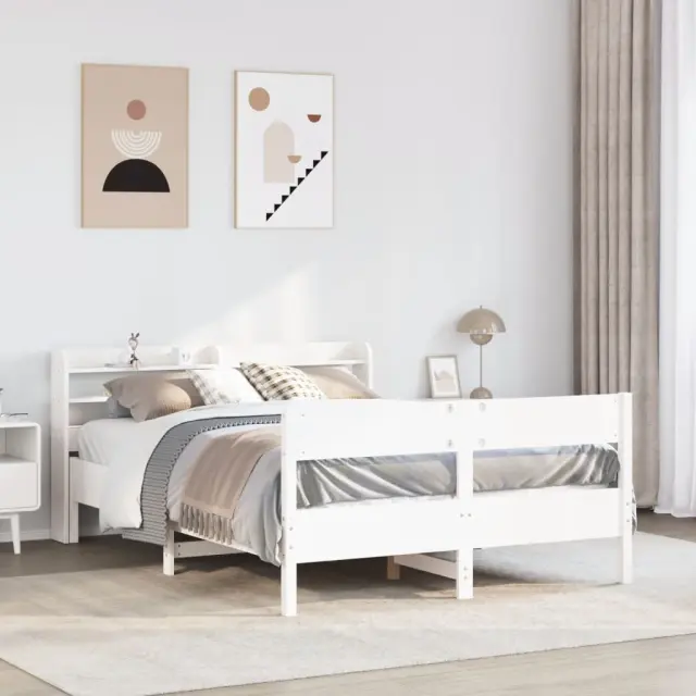 Zagotovite si boljši spanec s tem posteljnim okvirjem! Je prijeten dodatek za vsako spalnico. Stabilen in dolgotrajen okvir: Trdna borovina je znana po svoji trdnosti in trajnosti. Ravni vzorci in značilni vozli prispevajo k njenemu rustikalnemu čaru.Podnožje z letvami za optimalno podporo: Za podporo in zračnost ležišča je posteljni okvir opremljen z letvenim dnom.Vsestransko vzglavje: Ta posteljni okvir je opremljen z vzglavjem, ki zagotavlja odlično oporo hrbtu, ko sedite v postelji in berete ali gledate televizijo, hkrati pa služi tudi kot dekorativni element.Veliko prostora za shranjevanje: To elegantno vzglavje ima tri priročne police, ki ponujajo veliko prostora za shranjevanje, da bodo vaše večerne potrebščine na dosegu roke. Dobro je vedeti:Vzmetnica ni priložena tej postelji. Ponujamo različno izbiro ležišč. V naši trgovini si lahko ogledate ustrezne vzmetnice.Barva: BelaMaterial posteljnega okvirja: Trdna borovinaMaterial letvic: Vezan lesCelotne dimenzije: 208 x 145 x 82 cm (D x Š x V)Velikost primerne vzmetnice: 135 x 190 cm (Š x D) (vzmetnica ni priložena)S policami za shranjevanjePotrebno sestavljanje: DaPaket vsebuje:1 x Posteljni okvir1 x Vzglavje