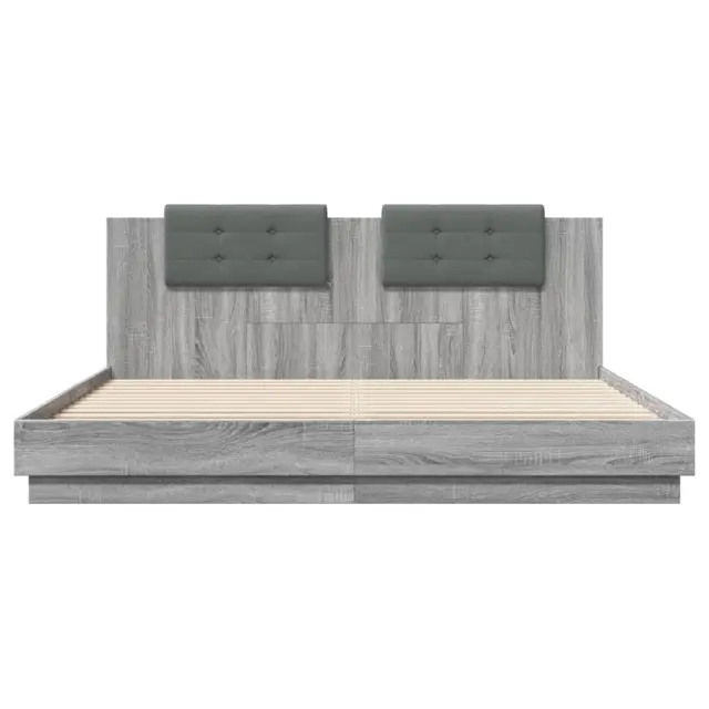 Zagotovite si boljši spanec s tem posteljnim okvirjem z vzglavjem! Je prijeten dodatek za vsako spalnico. Vzdržljiv material: Inženirski les se ponaša z izjemno kakovostjo, gladko površino ter močjo, stabilnostjo in odpornostjo na vlago.Letvice iz vezanega lesa: Letvice iz vezanega lesa omogočajo dobro porazdelitev teže in zagotavljajo, da vzmetnica ostane na mestu ob vsakem zasuku in obračanju med spanjem.Odlična podpora: Vzglavna stranica je napolnjena s peno za izjemno mehkobo in optimalno udobje ter zagotavlja odlično podporo hrbtu, ko sedite v postelji in berete ali gledate televizijo. Dobro je vedeti:Vzmetnica ni priložena tej postelji. Ponujamo različno izbiro ležišč. V naši trgovini si lahko ogledate ustrezne vzmetnice.Barva postelje: Siva sonomaBarva blazine za vzglavje: Temno sivaMaterial posteljnega okvirja: Inženirski les, tkanina (100 % poliester)Material letvic: Vezan lesMaterial polnila blazine za vzglavje: PenaCelotne dimenzije: 203 x 203,5 x 84 cm (D x Š x V)Velikost primerne vzmetnice: 200 x 200 cm (Š x D) (vzmetnica ni priložena)Velikost blazine za vzglavje: 62 x 32 cm (D x Š)Potrebno sestavljanje: Da