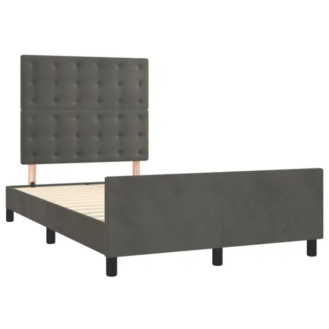 Zagotovite si boljši spanec s tem posteljnim okvirjem z vzglavjem! Je prijeten dodatek za vsako spalnico. Mehak žamet: Žamet je mehka in razkošna tkanina, ki jo prepoznamo po gostem kupu enakomerno rezanih gladkih vlaken. Žametna tkanina ima značilen mehak občutek, zaradi česar je prijetna na dotik.Nastavljiva višina: Vzglavje postelje je nastavljivo po višini po vaših željah.Podporne noge: Postelja je podprta s čvrstimi nogami, ki zagotavljajo njeno stabilnost, varnost in trdnost.Letvice iz vezanega lesa: Letvice iz vezanega lesa omogočajo dobro porazdelitev teže in zagotavljajo, da vzmetnica ostane na mestu ob vsakem zasuku in obračanju med spanjem.Udobna opora: To vzglavje za posteljo vam zagotavlja odlično oporo za hrbet, ko sedite na postelji in berete ali gledate filme. Dobro je vedeti:Paket vsebuje samo posteljni okvir. Vzmetnica ni priložena. V naši trgovini si lahko ogledate ustrezne vzmetnice.Barva: Temno sivaMaterial: Material: Žamet (100 % poliester), vezan les, inženirski les, trden borov lesMaterial polnila: PenaCelotne dimenzije: 193 x 123 x 118/128 cm (D x Š x V)Velikost primerne vzmetnice: 120 x 190 cm (Š x D) (vzmetnica ni priložena)Potrebno sestavljanje: DaPaket vsebuje:1 x Posteljni okvir z vznožjem2 x Vzglavje