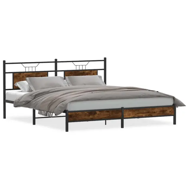 Posteljni okvir - Dvoposteljna postelja - Zakonska postelja brez vzmetnice hrast 183x203 cm inženirski les-J12060