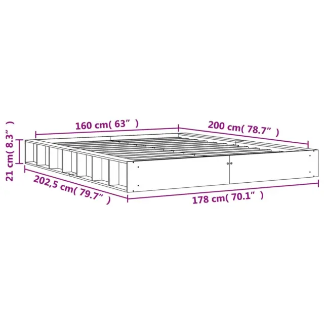 S tem lesenim posteljnim okvirjem lahko uživate v odličnem spancu! To je praktičen in dekorativen dodatek za vaše notranje prostore. Trdna borovina: Trdna borovina je čudovit naravni material. Borovina ima ravne vzorce, grče pa dajejo materialu njegov značilen, rustikalen videz.Močan posteljni okvir: Lesen okvir zagotavlja trdnost in stabilnost. Letvice iz vezanega lesa omogočajo dobro porazdelitev teže in zagotavljajo, da vzmetnica ostane na mestu ob vsakem zasuku in obračanju med spanjem.Prostorsko varčna zasnova: To posteljno dno ima višino, ki prihrani prostor, zaradi česar je popolno za manjše sobe ali sobe z nizkimi stropi. Dobro je vedeti:Vzmetnica ni priložena tej postelji. Ponujamo različno izbiro ležišč. V naši trgovini si lahko ogledate ustrezne vzmetnice.Barva: Voščeno rjavaMaterial posteljnega okvirja: Trdna borovinaMaterial letvic: Vezan lesDimenzije: 202,5 x 178 x 21 cm (D x Š x V)Velikost primerne vzmetnice: 160 x 200 cm (Š x D) (vzmetnica ni priložena)Potrebno sestavljanje: Da
