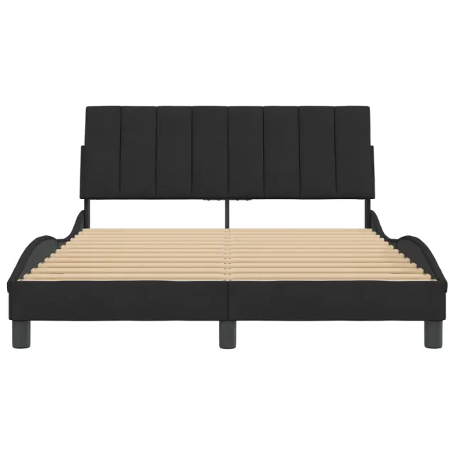 Zagotovite si boljši spanec s tem posteljnim okvirjem z vzglavjem! Je prijeten dodatek za vsako spalnico. Mehak žamet: Žamet je mehka in udobna tkanina, ki je prijetna do kože.Letvice iz vezanega lesa: Letvice iz vezanega lesa omogočajo dobro porazdelitev teže in zagotavljajo, da vzmetnica ostane na mestu ob vsakem zasuku in obračanju med spanjem.Odlična podpora: Vzglavna stranica je napolnjena s peno za izjemno mehkobo in optimalno udobje ter zagotavlja odlično podporo hrbtu, ko sedite v postelji in berete ali gledate televizijo.Priročna zasnova: Vzglavna stranica ima zadrgo za preprosto namestitev, pripenjala na zadnji strani pa se lahko uporabijo za pritrditev LED lučk.Valovita stranica: Valoviti videz posteljnega okvirja je eleganten in prefinjen. Dekorju v vašem domu dodaja sodoben in eleganten pridih ter tako postane osrednja točka spalnice. Dobro je vedeti:Vzmetnica ni priložena tej postelji. Ponujamo različno izbiro ležišč. V naši trgovini si lahko ogledate ustrezne vzmetnice.Posteljni okvir z vzglavjem:Barva: ČrnaMaterial: Žamet (100 % poliester), kovina, trdna borovina, vezan les, inženirski lesCelotne dimenzije: 218 x 145 x 74,5 cm (D x Š x V)Velikost primerne vzmetnice: 140 x 200 cm (Š x D) (vzmetnica ni priložena)Oblazinjeno vzglavje:Barva: ČrnaMaterial: Žamet (100 % poliester)Material polnila: PenaDimenzije: 140 x 3 x 45 cm (D x Š x V)Primerna širina vzmetnice: 140 cmPotrebno sestavljanje: DaPaket vsebuje:1 x Posteljni okvir z vzglavjem1 x Oblazinjeno vzglavje