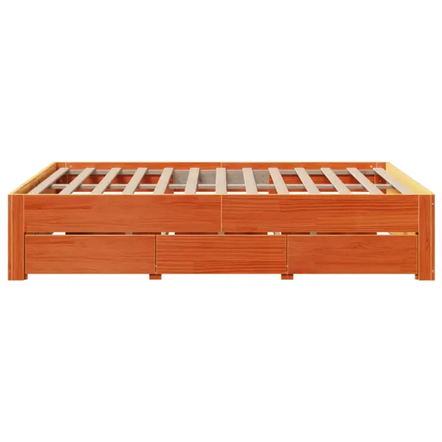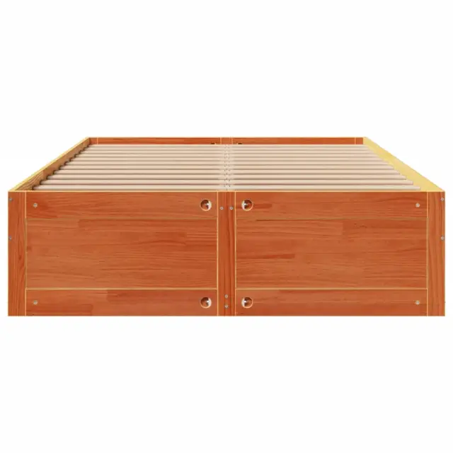 Zagotovite si boljši spanec s tem posteljnim okvirjem! Je prijeten dodatek za vsako spalnico. Stabilen in dolgotrajen okvir: Trdna borovina je znana po svoji trdnosti in trajnosti. Ravni vzorci in značilni vozli prispevajo k njenemu rustikalnemu čaru.Podnožje z letvami za optimalno podporo: Za podporo in zračnost ležišča je posteljni okvir opremljen z letvenim dnom.Stabilne in vzdržljive noge: Ta postelja je podprta z robustnimi nogami, ki zagotavljajo stabilnost, varnost in trdnost.Funkcija shranjevanja: Ta posteljni okvir ima predale za dobro organizacijo revij, knjig, igrač in drugih manjših predmetov. Dobro je vedeti:Vzmetnica ni priložena tej postelji. Ponujamo različno izbiro ležišč. V naši trgovini si lahko ogledate ustrezne vzmetnice.Barva: Voščeno rjavaMaterial posteljnega okvirja: Trdna borovinaCelotne dimenzije: 193,5 x 143,5 x 41 cm (D x Š x V)Dimenzije predala (vsak): 59 x 36 x 18,5 cm (D x Š x V)Velikost primerne vzmetnice: 140 x 190 cm (Š x D) (vzmetnica ni priložena)Z letvenim podomPotrebno sestavljanje: Da