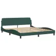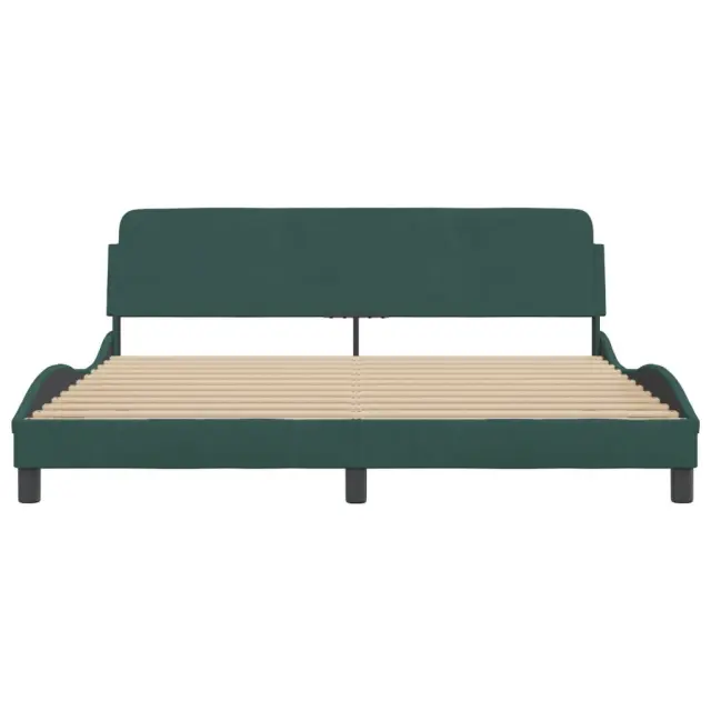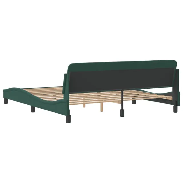 Zagotovite si boljši spanec s tem posteljnim okvirjem z vzglavjem! Je prijeten dodatek za vsako spalnico. Mehak žamet: Žamet je mehka in udobna tkanina, ki je prijetna do kože.Podporne noge: Postelja je podprta s čvrstimi nogami, ki zagotavljajo njeno stabilnost, varnost in trdnost.Letvice iz vezanega lesa: Letvice iz vezanega lesa omogočajo dobro porazdelitev teže in zagotavljajo, da vzmetnica ostane na mestu ob vsakem zasuku in obračanju med spanjem.Udobna opora: To vzglavje za posteljo vam zagotavlja odlično oporo za hrbet, ko sedite na postelji in berete ali gledate filme.Valovita stranica: Valoviti videz posteljnega okvirja je eleganten in prefinjen. Dekorju v vašem domu dodaja sodoben in eleganten pridih ter tako postane osrednja točka spalnice. Dobro je vedeti:Vzmetnica ni priložena tej postelji. Ponujamo različno izbiro ležišč. V naši trgovini si lahko ogledate ustrezne vzmetnice.Barva: Temno zelenaMaterial: Žamet (100 % poliester), kovina, trdna borovina, vezan lesCelotne dimenzije: 218 x 185 x 74,5 cm (D x Š x V)Velikost primerne vzmetnice: 180 x 200 cm (Š x D) (vzmetnica ni priložena)Potrebno sestavljanje: Da