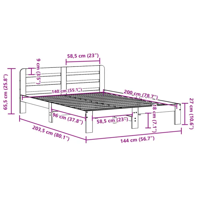 Zagotovite si boljši spanec s tem posteljnim okvirjem! Je prijeten dodatek za vsako spalnico. Stabilen in dolgotrajen okvir: Trdna borovina je znana po svoji trdnosti in trajnosti. Ravni vzorci in značilni vozli prispevajo k njenemu rustikalnemu čaru.Podnožje z letvami za optimalno podporo: Za podporo in zračnost ležišča je posteljni okvir opremljen z letvenim dnom.Dodaten prostor za shranjevanje: Za večje udobje je pod leseno posteljo dodaten prostor, v katerem lahko shranite škatle za shranjevanje, da bodo lepo skrite.Stabilne in vzdržljive noge: Ta postelja je podprta z robustnimi nogami, ki zagotavljajo stabilnost, varnost in trdnost.Vsestransko vzglavje: Ta panelna postelja je opremljena z vzglavjem, ki zagotavlja odlično oporo hrbtu, ko sedite v postelji in berete ali gledate televizijo, hkrati pa služi tudi kot dekorativni element. Dobro je vedeti:Vzmetnica ni priložena tej postelji. Ponujamo različno izbiro ležišč. V naši trgovini si lahko ogledate ustrezne vzmetnice.Barva: BelaMaterial: Trdna borovinaMaterial letvic: Vezan lesDimenzije: 203,5 x 144 x 65,5 cm (D x Š x V)Velikost primerne vzmetnice: 140 x 200 cm (Š x D) (vzmetnica ni priložena)Potrebno sestavljanje: Da