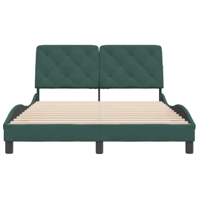 Zagotovite si boljši spanec s tem posteljnim okvirjem z vzglavjem! Je prijeten dodatek za vsako spalnico. Mehak žamet: Žamet je mehka in udobna tkanina, ki je prijetna do kože.Letvice iz vezanega lesa: Letvice iz vezanega lesa omogočajo dobro porazdelitev teže in zagotavljajo, da vzmetnica ostane na mestu ob vsakem zasuku in obračanju med spanjem.Odlična podpora: Vzglavna stranica je napolnjena s peno za izjemno mehkobo in optimalno udobje ter zagotavlja odlično podporo hrbtu, ko sedite v postelji in berete ali gledate televizijo.Priročna zasnova: Vzglavna stranica ima zadrgo za preprosto namestitev, pripenjala na zadnji strani pa se lahko uporabijo za pritrditev LED lučk.Valovita stranica: Valoviti videz posteljnega okvirja je eleganten in prefinjen. Dekorju v vašem domu dodaja sodoben in eleganten pridih ter tako postane osrednja točka spalnice. Dobro je vedeti:Vzmetnica ni priložena tej postelji. Ponujamo različno izbiro ležišč. V naši trgovini si lahko ogledate ustrezne vzmetnice.Posteljni okvir z vzglavjem:Barva: Temno zelenaMaterial: Žamet (100 % poliester), kovina, trdna borovina, vezan les, inženirski lesCelotne dimenzije: 208 x 145 x 74,5 cm (D x Š x V)Velikost primerne vzmetnice: 140 x 190 cm (Š x D) (vzmetnica ni priložena)Oblazinjeno vzglavje:Barva: Temno zelenaMaterial: Žamet (100 % poliester)Material polnila: PenaDimenzije: 142 x 6 x 48 cm (D x Š x V)Primerna širina vzmetnice: 140 cmPotrebno sestavljanje: DaPaket vsebuje:1 x Posteljni okvir z vzglavjem1 x Oblazinjeno vzglavje