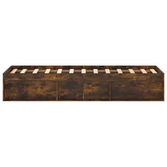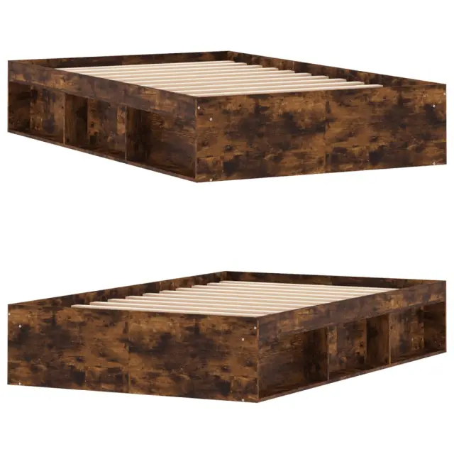 Ustvarite moderno spalnico s tem posteljnim okvirjem! To bo praktičen in okrasen dodatek za vaše notranje prostore. Vzdržljiv material: Inženirski les se ponaša z izjemno kakovostjo, gladko površino ter močjo, stabilnostjo in odpornostjo na vlago.Letvice iz vezanega lesa: Letvice iz vezanega lesa omogočajo dobro porazdelitev teže in zagotavljajo, da vzmetnica ostane na mestu ob vsakem zasuku in obračanju med spanjem.Dodaten prostor za shranjevanje: Postelja za goste ima skupno 6 predelkov na obeh straneh postelje za shranjevanje stvari, kot so knjige, lončnice in drugi okraski. Dobro je vedeti:Vzmetnica ni priložena tej postelji. Ponujamo različno izbiro ležišč. V naši trgovini si lahko ogledate ustrezne vzmetnice.Barva: Dimljeni hrastMaterial posteljnega okvirja: Inženirski les, trdna borovinaMaterial letvic: Vezan lesCelotne dimenzije: 203 x 123 x 35 cm (D x Š x V)Primerna velikost vzmetnice (vzmetnica ni vključena): 120 x 200 cm (Š x D)Potrebno sestavljanje: Da