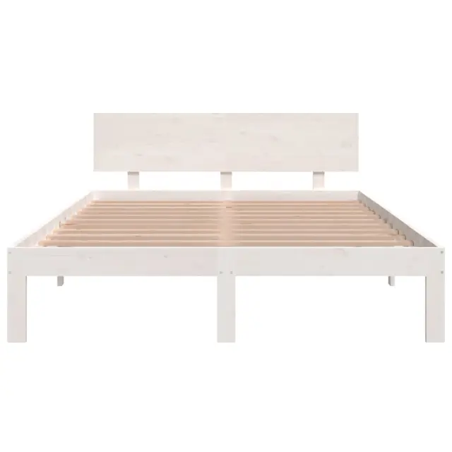 Ustvarite moderno spalnico s tem lesenim posteljnim okvirjem! To je praktičen in dekorativen dodatek za vaše notranje prostore. Vrhunska trdna borovina: Trdna borovina je čudovit naravni material. Borovina ima ravne vzorce, grče pa dajejo materialu njegov značilen, rustikalen videz.Močan posteljni okvir: Lesen okvir zagotavlja trdnost in stabilnost. Letveno dno iz trdne borovine vaši postelji zagotavlja dodatno podporo. Podaljša življenjsko dobo vaše vzmetnice, saj absorbira večino obremenitev in teže na postelji.Udobno vzglavje: Klasično vzglavje omogoča udoben počitek med branjem ali gledanjem filma. Opomba:Paket vsebuje samo posteljni okvir. Vzmetnica ni priložena. V naši trgovini si lahko ogledate ustrezne vzmetnice.Ta posteljni okvir je primeren za vzmetnico velikosti 150x200 cm (5FT King Size).Barva: BelaMaterial: Trdna borovinaCelotne dimenzije: 205,5 x 153,5 x 69,5 cm (D x Š x V)Spalna višina, merjena od tal: 23 cmVelikost primerne vzmetnice: 150 x 200 cm (Š x D) (vzmetnica ni priložena)Potrebno sestavljanje: DaPaket vsebuje:1 x Posteljni okvir1 x Vzglavje