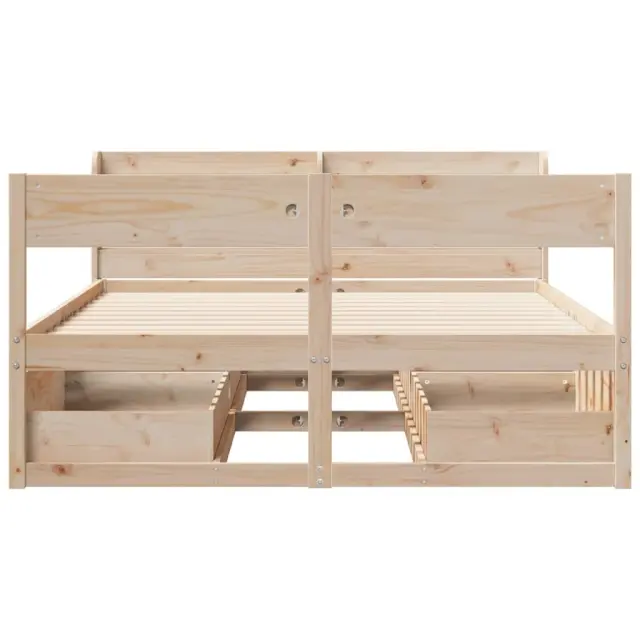 Zagotovite si boljši spanec s tem posteljnim okvirjem! Je prijeten dodatek za vsako spalnico. Stabilen in dolgotrajen okvir: Trdna borovina je znana po svoji trdnosti in trajnosti. Ravni vzorci in značilni vozli prispevajo k njenemu rustikalnemu čaru.Podnožje z letvami za optimalno podporo: Za podporo in zračnost ležišča je posteljni okvir opremljen z letvenim dnom.Popolnoma izkoriščen prostor: Ta posteljni okvir ima spodaj štiri predale, ki omogočajo shranjevanje predmetov, kot so dodatna posteljnina, sezonska oblačila in igrače.Veliko prostora za shranjevanje: To elegantno posteljno vzglavje ima tri priročne police, ki ponujajo veliko prostora za shranjevanje, da bodo vaše večerne potrebščine na dosegu roke.Samostoječe vzglavje: Samostoječe vzglavje ponuja brezskrbno rešitev za enostavno postavitev in premikanje brez potrebe po vgradnji na steno. Dobro je vedeti:Vzmetnica ni priložena tej postelji. Ponujamo različno izbiro ležišč. V naši trgovini si lahko ogledate ustrezne vzmetnice.Material: Trdna borovina (neobdelana)Material letvic: Vezan lesCelotne dimenzije: 218 x 170 x 82 cm (D x Š x V)Velikost primerne vzmetnice: 160 x 200 cm (Š x D) (vzmetnica ni priložena)Dimenzije predala: 95,5 x 47 x 25,5 cm (D x Š x V)S policami za shranjevanjePotrebno sestavljanje: Da Paket vsebuje:1 x Posteljni okvir1 x Vzglavje4 x Predal
