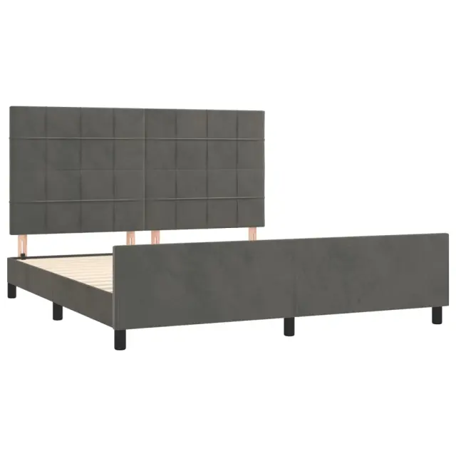Zagotovite si boljši spanec s tem posteljnim okvirjem z vzglavjem! Je prijeten dodatek za vsako spalnico. Mehak žamet: Žamet je mehka in razkošna tkanina, ki jo prepoznamo po gostem kupu enakomerno rezanih gladkih vlaken. Žametna tkanina ima značilen mehak občutek, zaradi česar je prijetna na dotik.Nastavljiva višina: Vzglavje postelje je nastavljivo po višini po vaših željah.Podporne noge: Postelja je podprta s čvrstimi nogami, ki zagotavljajo njeno stabilnost, varnost in trdnost.Letvice iz vezanega lesa: Letvice iz vezanega lesa omogočajo dobro porazdelitev teže in zagotavljajo, da vzmetnica ostane na mestu ob vsakem zasuku in obračanju med spanjem.Udobna opora: To vzglavje za posteljo vam zagotavlja odlično oporo za hrbet, ko sedite na postelji in berete ali gledate filme. Opomba:Paket vsebuje samo posteljni okvir. Vzmetnica ni priložena. V naši trgovini si lahko ogledate ustrezne vzmetnice.Vsakemu izdelku je priložen priročnik za enostavno sestavljanje.Barva: Temno sivaMaterial: Žamet (100 % poliester), trden macesnov les, vezan les, inženirski lesMaterial polnila: PenaCelotne dimenzije: 203 x 186 x 118/128 cm (D x Š x V)Velikost primerne vzmetnice: 180 x 200 cm (Š x D) (vzmetnica ni priložena)Paket vsebuje:1 x Posteljni okvir z vznožjem1 x Vzglavje