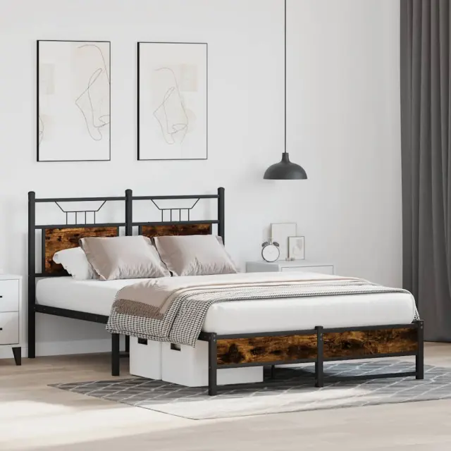 Zagotovite si boljši spanec s tem posteljnim okvirjem! Je prijeten dodatek za vsako spalnico. Stabilen in dolgotrajen okvir: Jeklo je močno, stabilno in trpežno, zato je idealna izbira za številne aplikacije, od proizvodnje pohištva do gradbeništva.Vsestransko vzglavje: Ta postelja je opremljena z vzglavjem, ki zagotavlja odlično oporo hrbtu, ko sedite v postelji in berete ali gledate televizijo, hkrati pa služi tudi kot dekorativni element.Dodaten prostor za shranjevanje: Za udobje ima posteljni podstavek pod seboj dodaten prostor, v katerem lahko shranite škatle za shranjevanje, ki niso vidne.Podnožje z letvami za optimalno podporo: Kovinski posteljni okvir je opremljen z letvenim dnom, ki zagotavlja oporo in zračnost ležišča. Dobro je vedeti:Vzmetnica ni priložena tej postelji. Ponujamo različno izbiro ležišč. V naši trgovini si lahko ogledate ustrezne vzmetnice.Barva: Dimljeni hrastMaterial: Inženirski les in jekloCelotne dimenzije: 207 x 126 x 91,5 cm (D x Š x V)Višina prostora pod posteljo: 27 cmVelikost primerne vzmetnice: 120 x 200 cm (Š x D) (vzmetnica ni priložena)Z vzglavjemPotrebno sestavljanje: Da