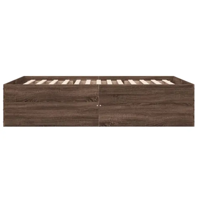 Zagotovite si boljši spanec s tem posteljnim okvirjem! Je prijeten dodatek za vsako spalnico. Vzdržljiv material: Inženirski les se ponaša z izjemno kakovostjo, gladko površino ter močjo, stabilnostjo in odpornostjo na vlago.Letvice za optimalno podporo: Okvir postelje je opremljen z letvicami, ki zagotavljajo osnovno podporo in zračnost vašega ležišča.Moderna zasnova: Svojim notranjim prostorom dodajte moderen stil! Moderen stil notranjih prostorov vključuje čiste linije, minimalističen videz in naravno svetlobo. Dobro je vedeti:Vzmetnica ni priložena tej postelji. Ponujamo različno izbiro ležišč. V naši trgovini si lahko ogledate ustrezne vzmetnice.Barva: Rjav hrastMaterial posteljnega okvirja: Inženirski lesMaterial letvic: Vezan lesCelotne dimenzije: 193 x 123 x 45 cm (D x Š x V)Velikost primerne vzmetnice: 120 x 190 cm (Š x D) (vzmetnica ni priložena)Potrebno sestavljanje: Da
