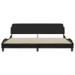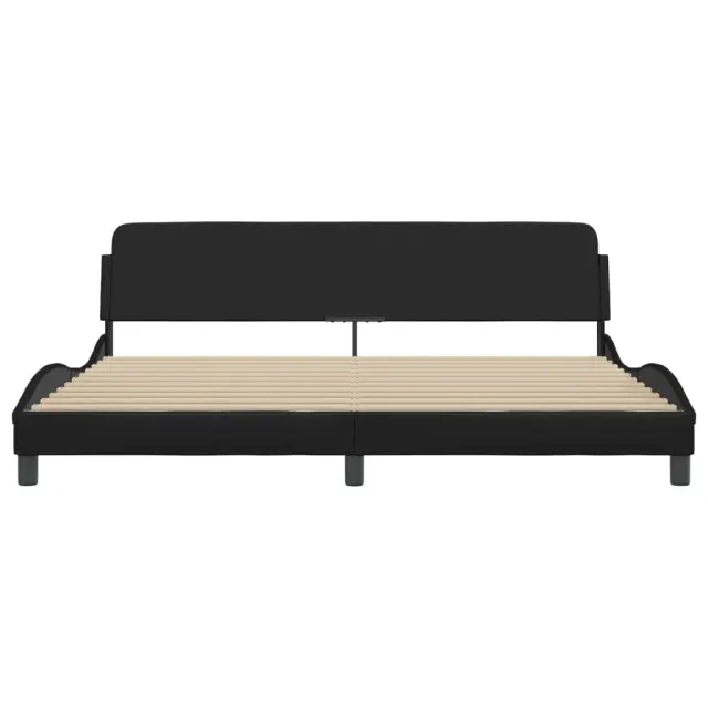 Zagotovite si boljši spanec s tem posteljnim okvirjem z vzglavjem! Je prijeten dodatek za vsako spalnico. Trpežno umetno usnje: Vrhunsko umetno usnje je zelo vzdržljiv material. Je odporno na madeže, zato ga lahko preprosto čistite z vlažno krpo. Gladka površina mu prav tako daje razkošen videz in lepoto pravega usnja.Podporne noge: Postelja je podprta s čvrstimi nogami, ki zagotavljajo njeno stabilnost, varnost in trdnost.Letvice iz vezanega lesa: Letvice iz vezanega lesa omogočajo dobro porazdelitev teže in zagotavljajo, da vzmetnica ostane na mestu ob vsakem zasuku in obračanju med spanjem.Udobna opora: To vzglavje za posteljo vam zagotavlja odlično oporo za hrbet, ko sedite na postelji in berete ali gledate filme.Valovita stranica: Valoviti videz posteljnega okvirja je eleganten in prefinjen. Dekorju v vašem domu dodaja sodoben in eleganten pridih ter tako postane osrednja točka spalnice. Dobro je vedeti:Vzmetnica ni priložena tej postelji. Ponujamo različno izbiro ležišč. V naši trgovini si lahko ogledate ustrezne vzmetnice.Barva: ČrnaMaterial: Umetno usnje (75 % polivinilklorid, 5 % bombaž, 20 % poliester), kovina, trdna borovina, vezan lesCelotne dimenzije: 218 x 205 x 74,5 cm (D x Š x V)Velikost primerne vzmetnice: 200 x 200 cm (Š x D) (vzmetnica ni priložena)Potrebno sestavljanje: Da
