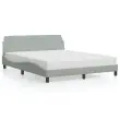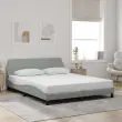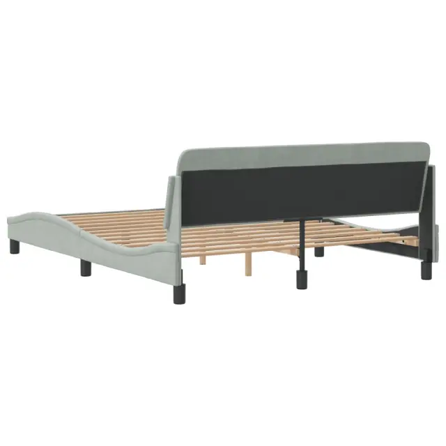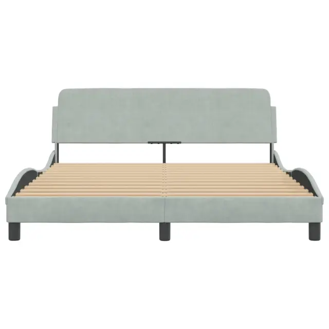 Zagotovite si boljši spanec s tem posteljnim okvirjem z vzglavjem! Je prijeten dodatek za vsako spalnico. Mehak žamet: Žamet je mehka in udobna tkanina, ki je prijetna do kože.Podporne noge: Postelja je podprta s čvrstimi nogami, ki zagotavljajo njeno stabilnost, varnost in trdnost.Letvice iz vezanega lesa: Letvice iz vezanega lesa omogočajo dobro porazdelitev teže in zagotavljajo, da vzmetnica ostane na mestu ob vsakem zasuku in obračanju med spanjem.Udobna opora: To vzglavje za posteljo vam zagotavlja odlično oporo za hrbet, ko sedite na postelji in berete ali gledate filme.Valovita stranica: Valoviti videz posteljnega okvirja je eleganten in prefinjen. Dekorju v vašem domu dodaja sodoben in eleganten pridih ter tako postane osrednja točka spalnice. Dobro je vedeti:Vzmetnica ni priložena tej postelji. Ponujamo različno izbiro ležišč. V naši trgovini si lahko ogledate ustrezne vzmetnice.Barva: Svetlo sivaMaterial: Žamet (100 % poliester), kovina, trdna borovina, vezan lesCelotne dimenzije: 218 x 165 x 74,5 cm (D x Š x V)Velikost primerne vzmetnice: 160 x 200 cm (Š x D) (vzmetnica ni priložena)Potrebno sestavljanje: Da