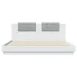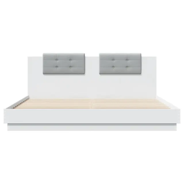 Zagotovite si boljši spanec s tem posteljnim okvirjem z vzglavjem! Je prijeten dodatek za vsako spalnico. Vzdržljiv material: Inženirski les se ponaša z izjemno kakovostjo, gladko površino ter močjo, stabilnostjo in odpornostjo na vlago.Letvice iz vezanega lesa: Letvice iz vezanega lesa omogočajo dobro porazdelitev teže in zagotavljajo, da vzmetnica ostane na mestu ob vsakem zasuku in obračanju med spanjem.Odlična podpora: Vzglavna stranica je napolnjena s peno za izjemno mehkobo in optimalno udobje ter zagotavlja odlično podporo hrbtu, ko sedite v postelji in berete ali gledate televizijo. Dobro je vedeti:Vzmetnica ni priložena tej postelji. Ponujamo različno izbiro ležišč. V naši trgovini si lahko ogledate ustrezne vzmetnice.Barva postelje: BelaBarva blazine za vzglavje: Svetlo sivaMaterial posteljnega okvirja: Inženirski les, tkanina (100 % poliester)Material letvic: Vezan lesMaterial polnila blazine za vzglavje: PenaCelotne dimenzije: 203 x 203,5 x 84 cm (D x Š x V)Velikost primerne vzmetnice: 200 x 200 cm (Š x D) (vzmetnica ni priložena)Velikost blazine za vzglavje: 62 x 32 cm (D x Š)Potrebno sestavljanje: Da
